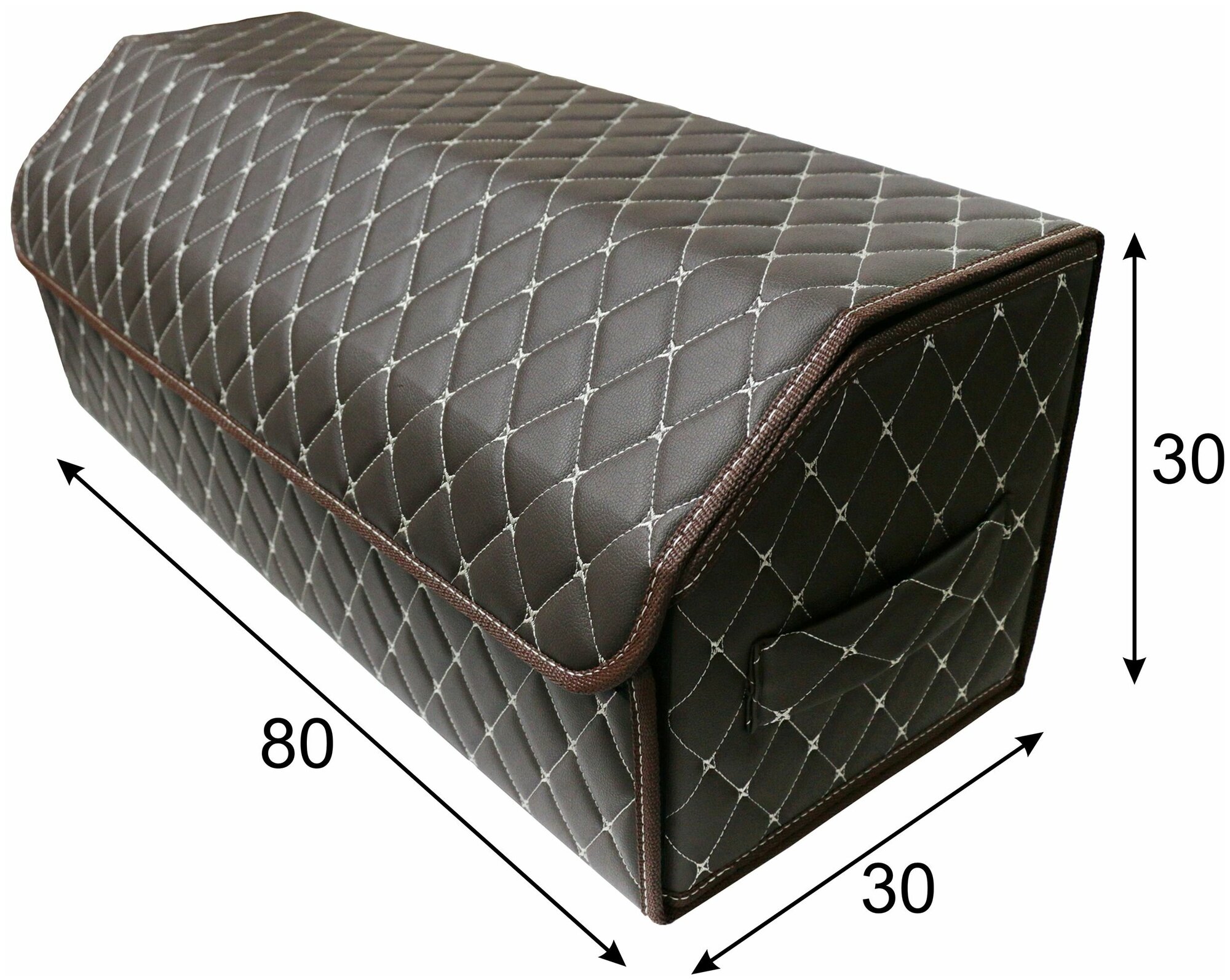 Органайзер для хранения в багажнике авто/Органайзер в багажник 80*30*35 квадрат коричневый строчка коричневая окантовка корич