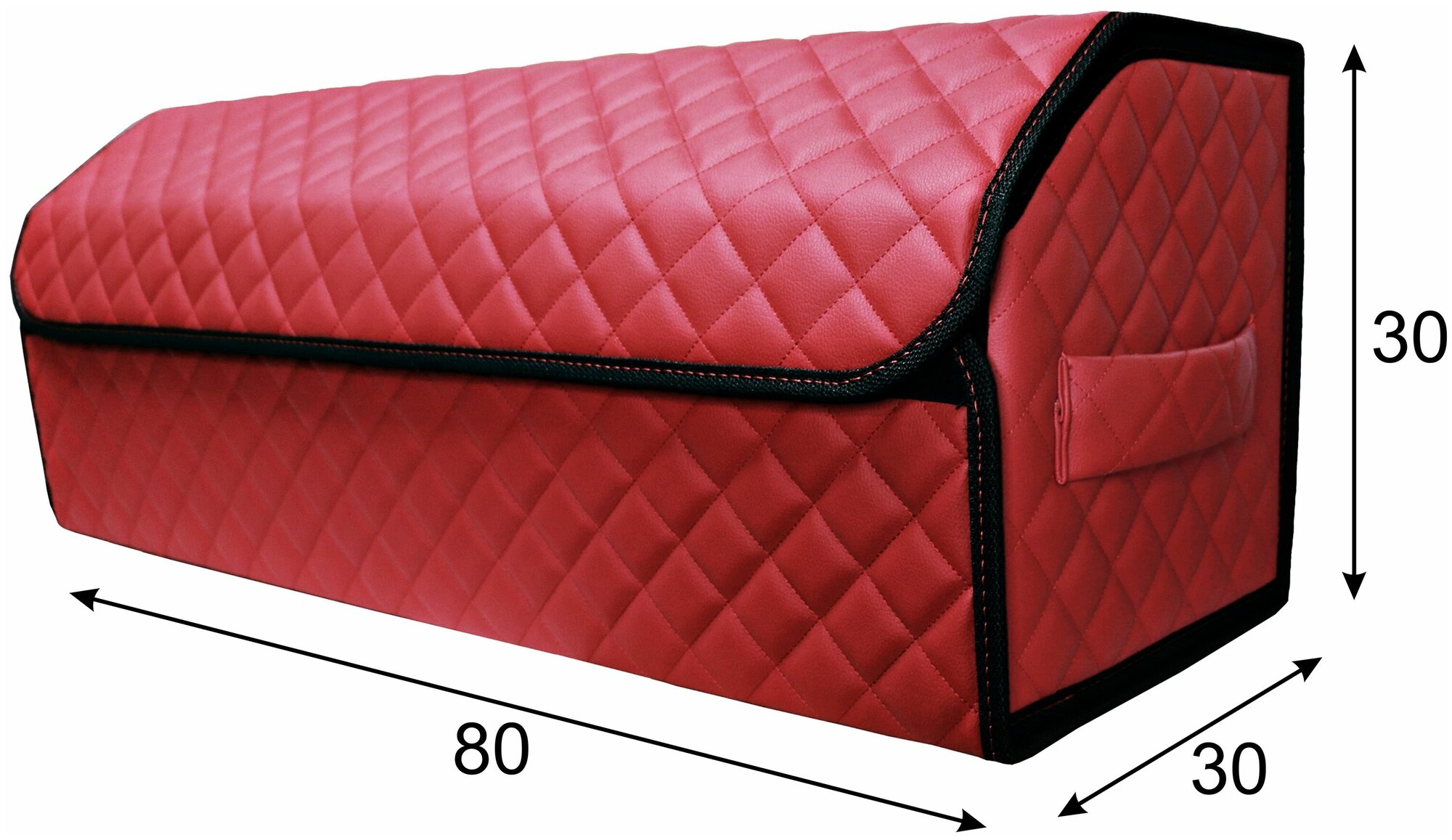 Аксессуары для авто/Органайзер в багажник 80х30х30 рисунок фигурный ромб красный/строчка черная/окантовка черн/саквояж/бокс/кофр для авто