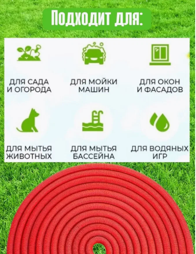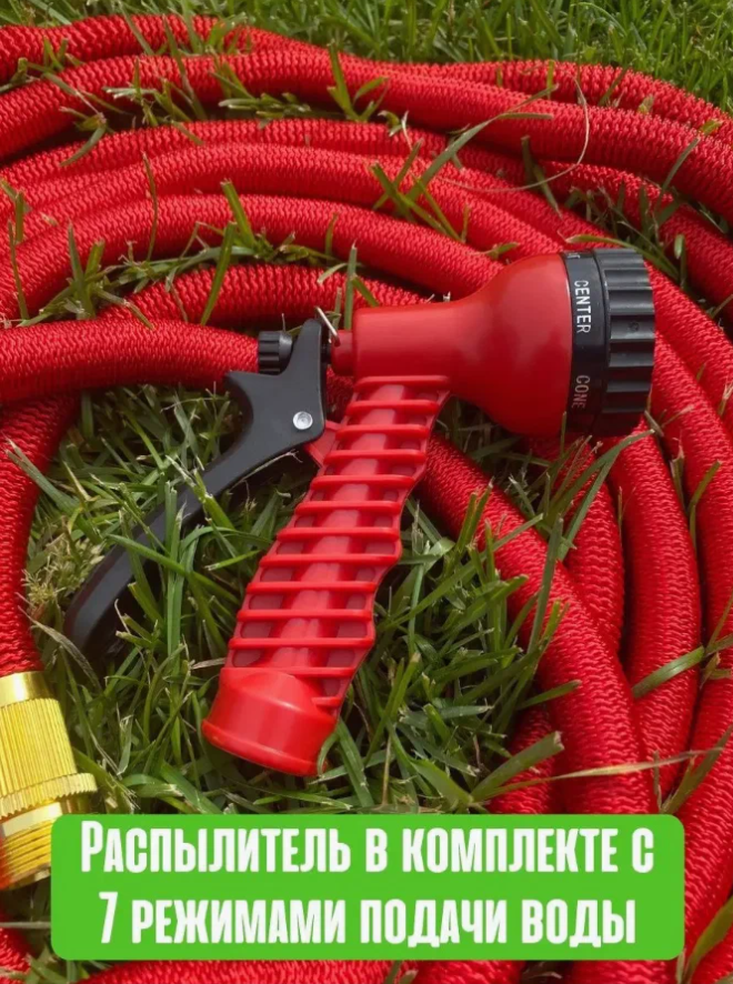 Шланг садовый красный растягивающийся 25 метров для полива с распылителем, с металлическим соединениям\Красный интересное: