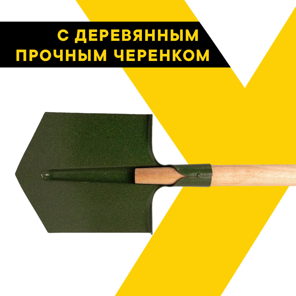 Лопата штыковая, 205 x 275 x 1400 мм, ребра жесткости, деревянный черенок Россия
