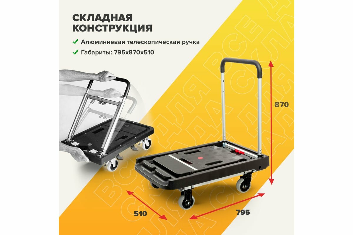 Magna Cart Тележка платформенная складная, алюминий, сталь, пластик, грузоподъемность 200кг, FF-XL интересное: