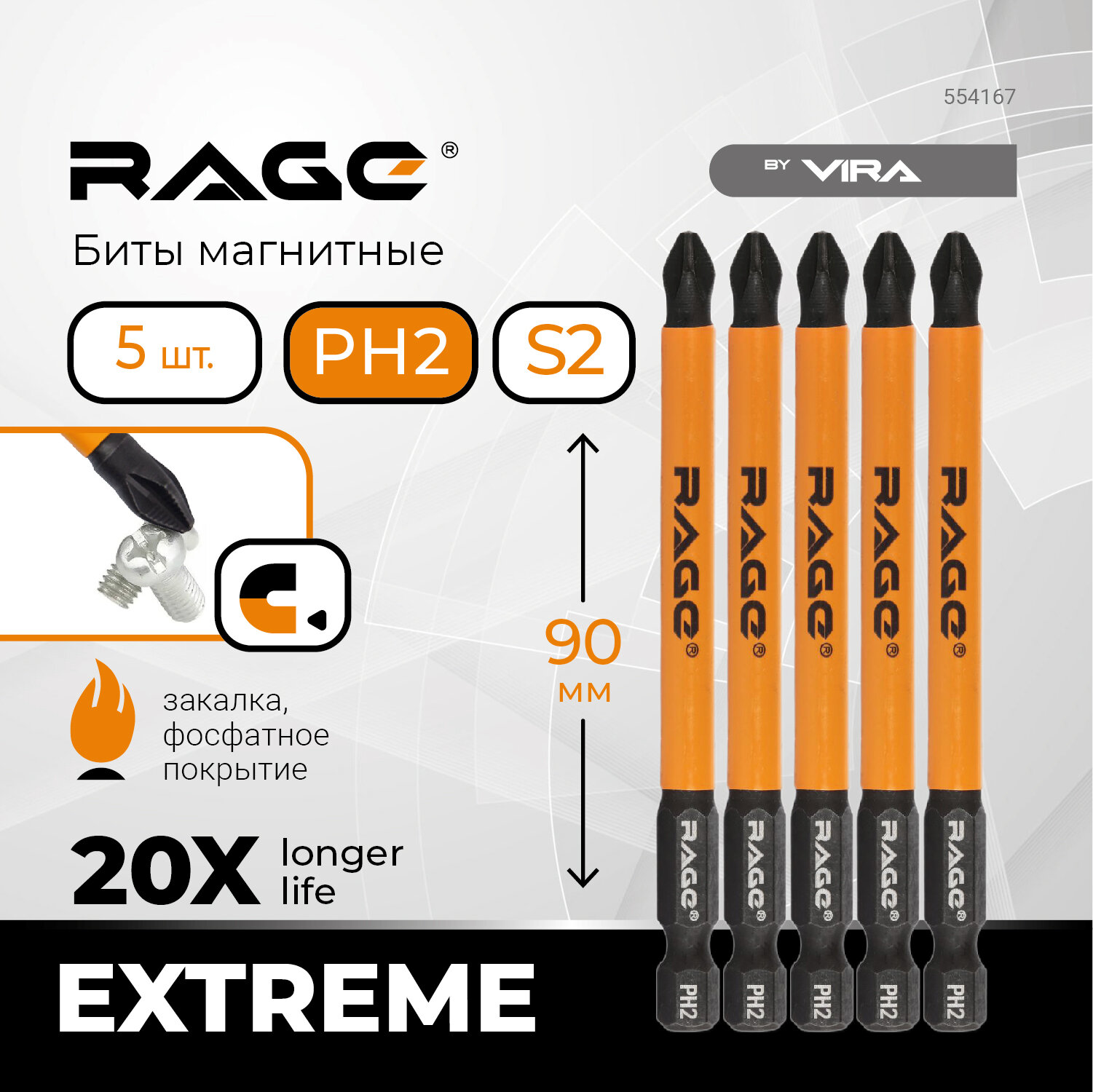VIRA Биты магнитные s2 ph2x90 мм 5шт rage by 554167