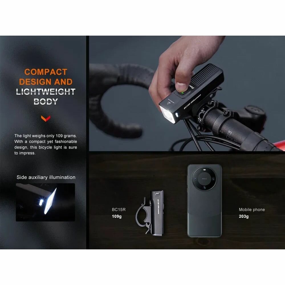 Велофонарь Fenix BC15R, 78 метров, мощность 400 люмен (Kомплект) интересное: