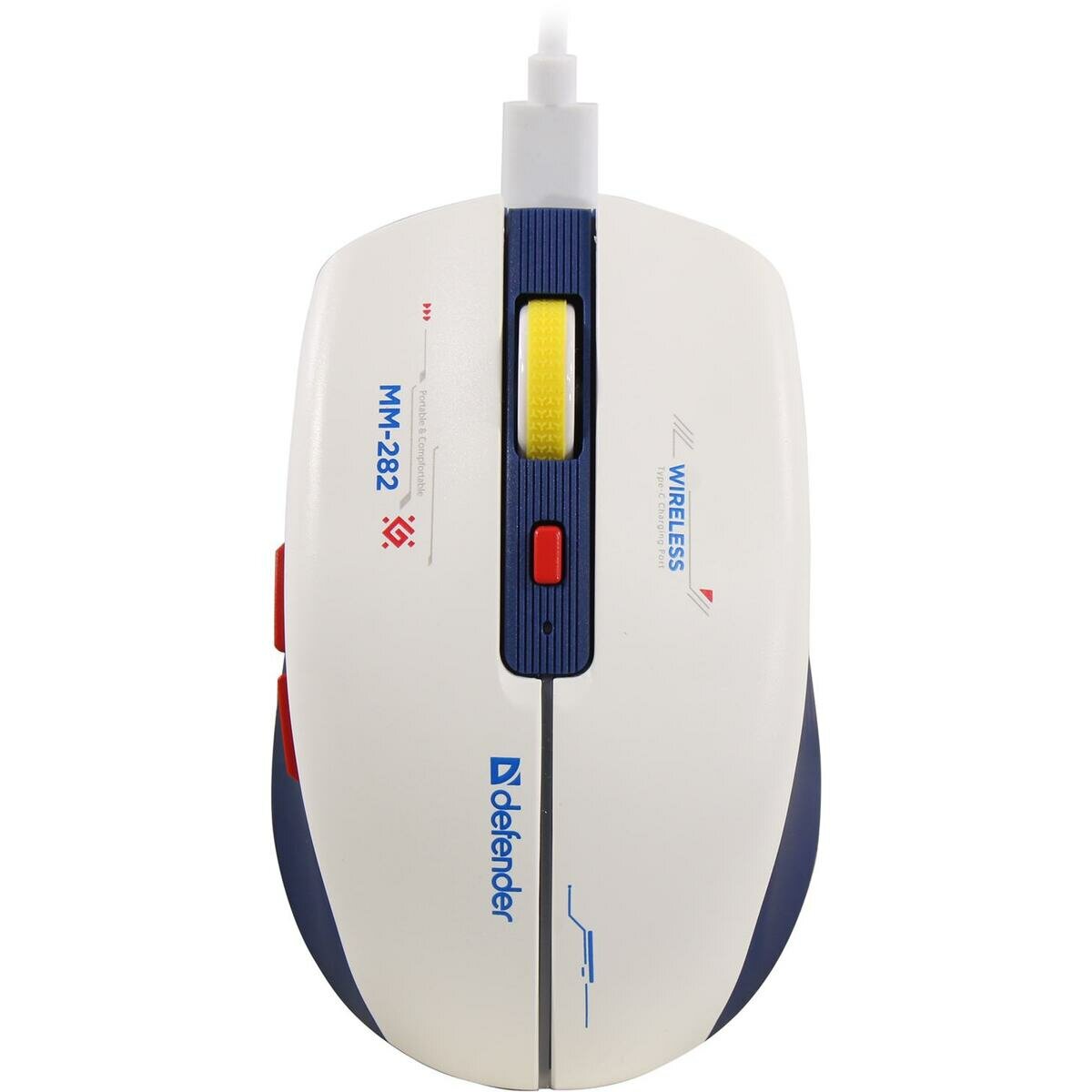 Мышь Defender Dila MM-282, белый/синий (52282) оптический, 1800 dpi, радиоканал