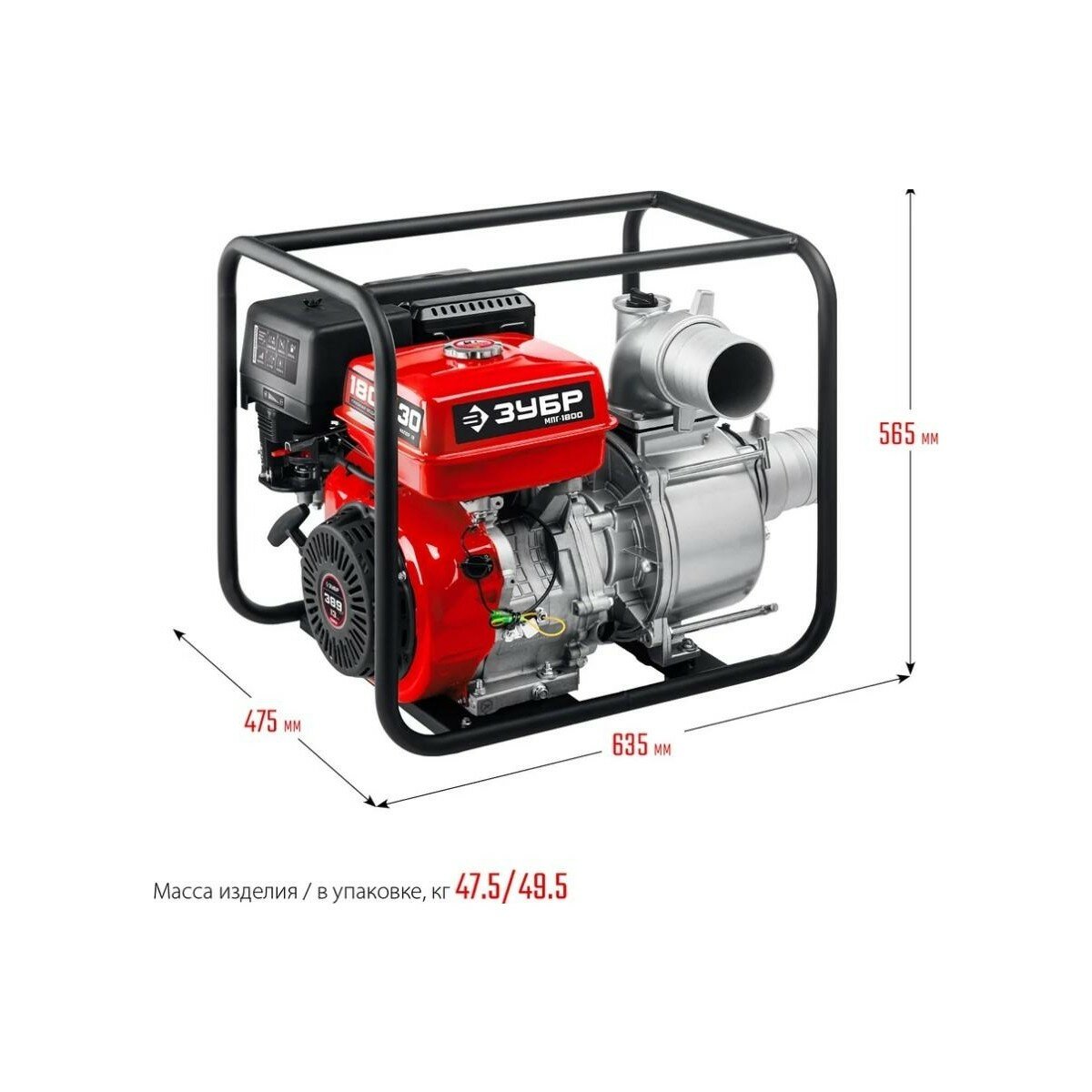 Купить Мотопомпа бензиновая ЗУБР МПГ-1800 для грязной воды