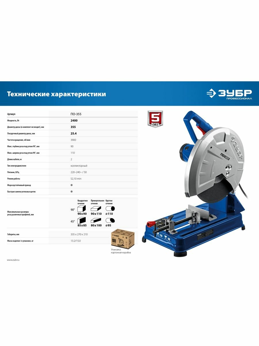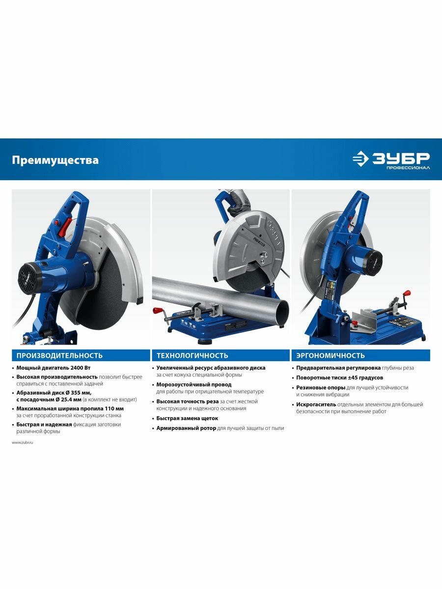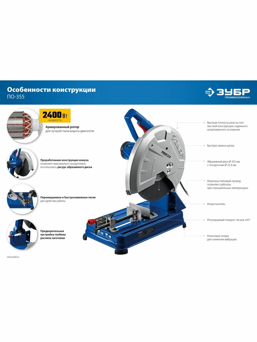 Пила отрезная, 355мм, 2400 Вт Профессионал ЗУБР ПО-355 интересное: