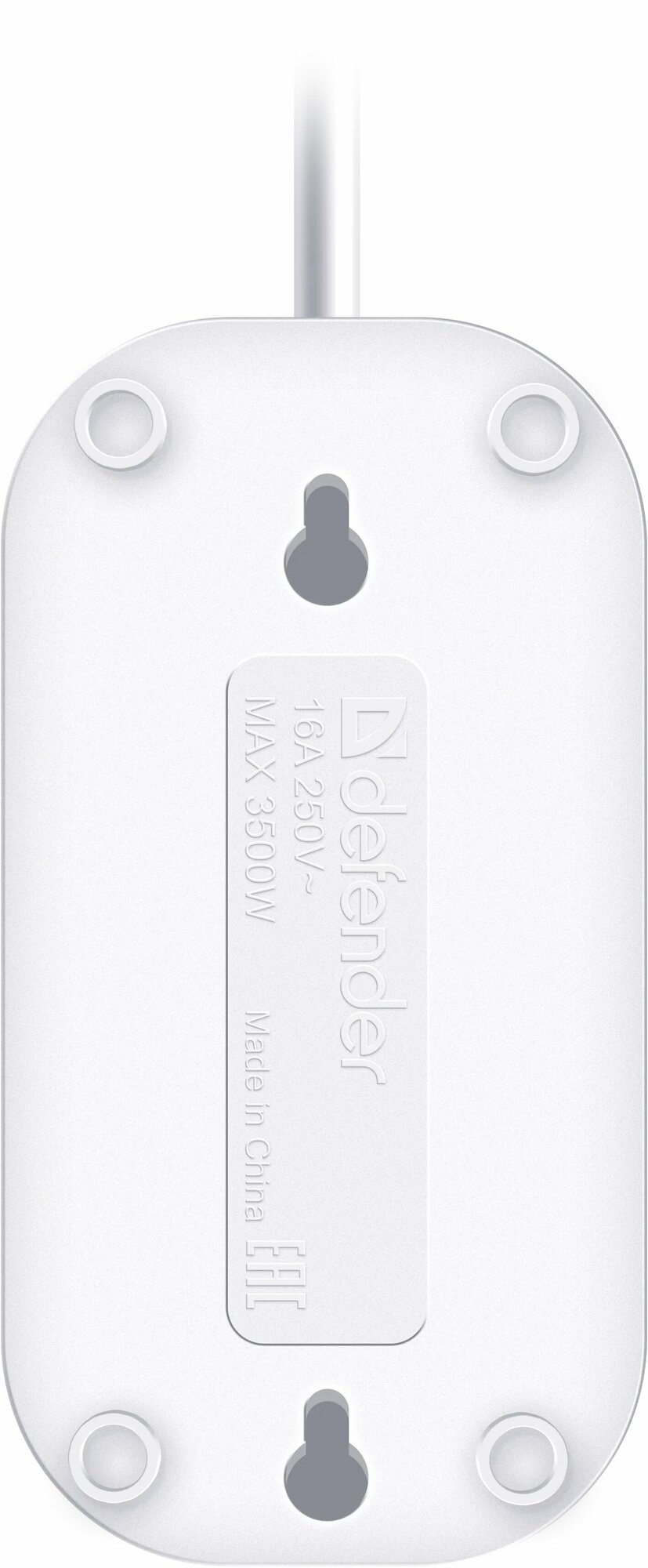 Удлинитель DEFENDER R330 3 гнезда, 1.5 метра, 16А/3500Вт, с заземлением, ПВС 3х1,0мм, белый