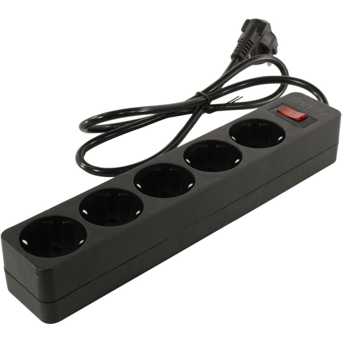 Сетевой фильтр SVEN SF-05E, черный, 1,8 м / 5 розеток