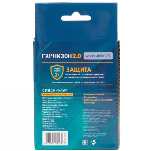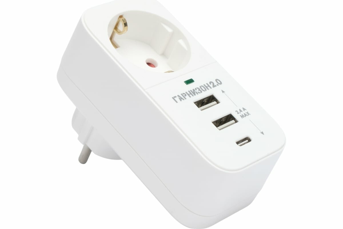 Сетевой фильтр с USB зарядкой Гарнизон 2.0 (1 розетка, 16А, 1xType-C, 2хUSB, белый)