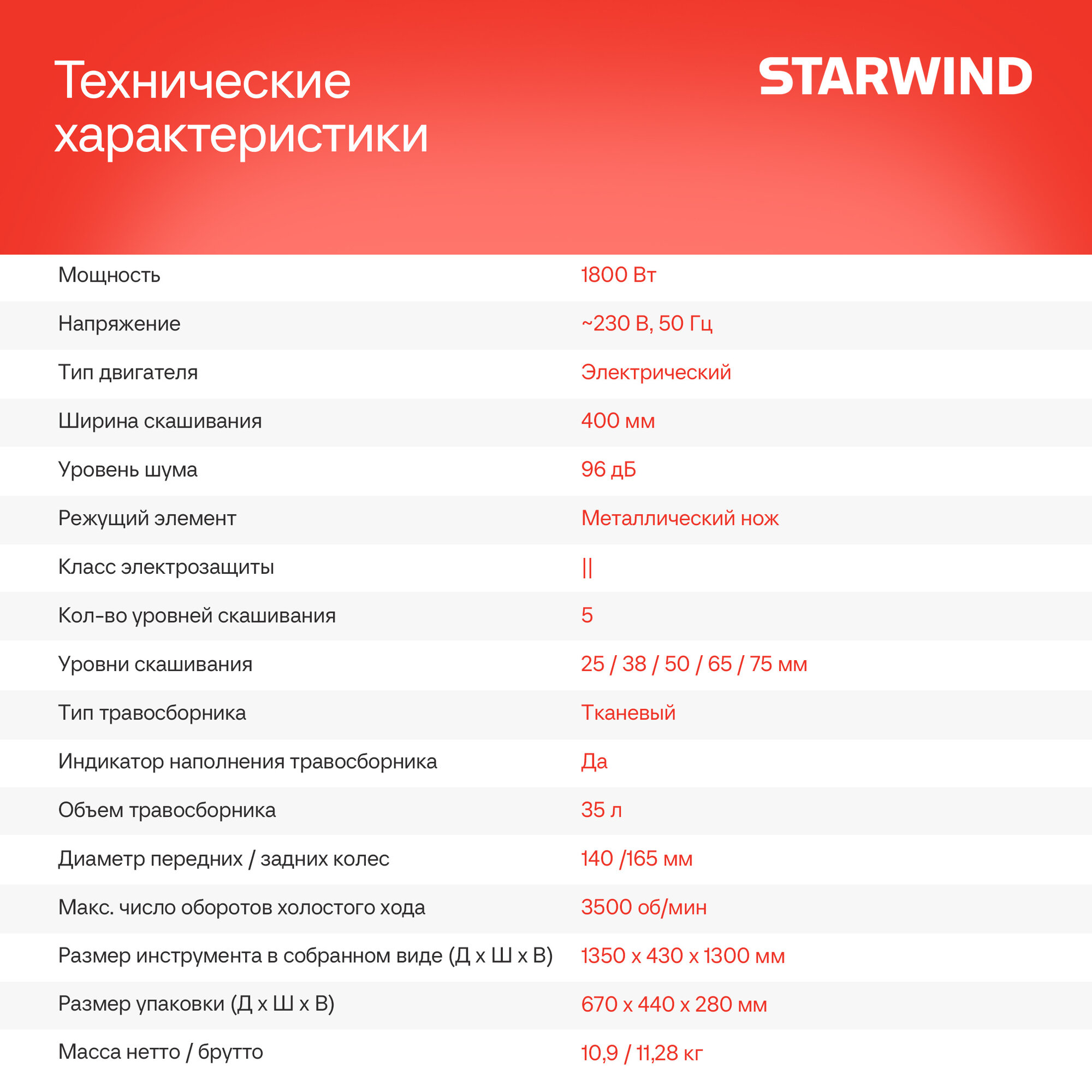 Газонокосилка электрическая Starwind ELM-1800 интересное:
