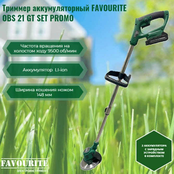 Триммер аккумуляторный для травы FAVOURITE OBS 21 GT SET PROMO, 21В с двумя аккумуляторами интересное: