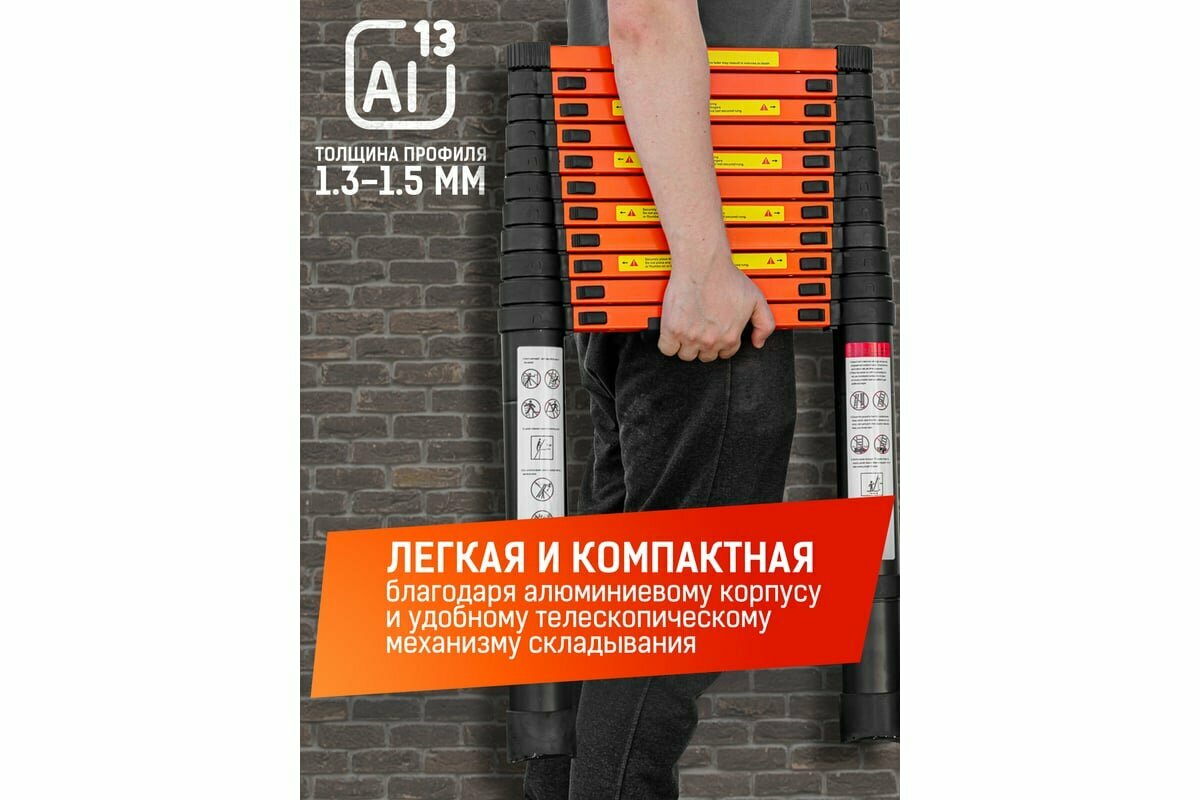 Лестница телескопическая алюм. бытовая 5.0м (13 ступ.) ISMA ISMA-UP500
