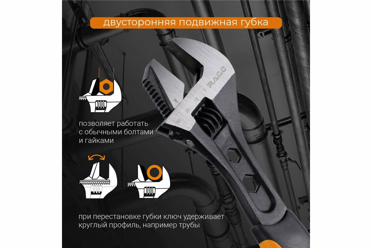 RAGE by VIRA Ключ разводной с переставной губкой 250 мм 311305