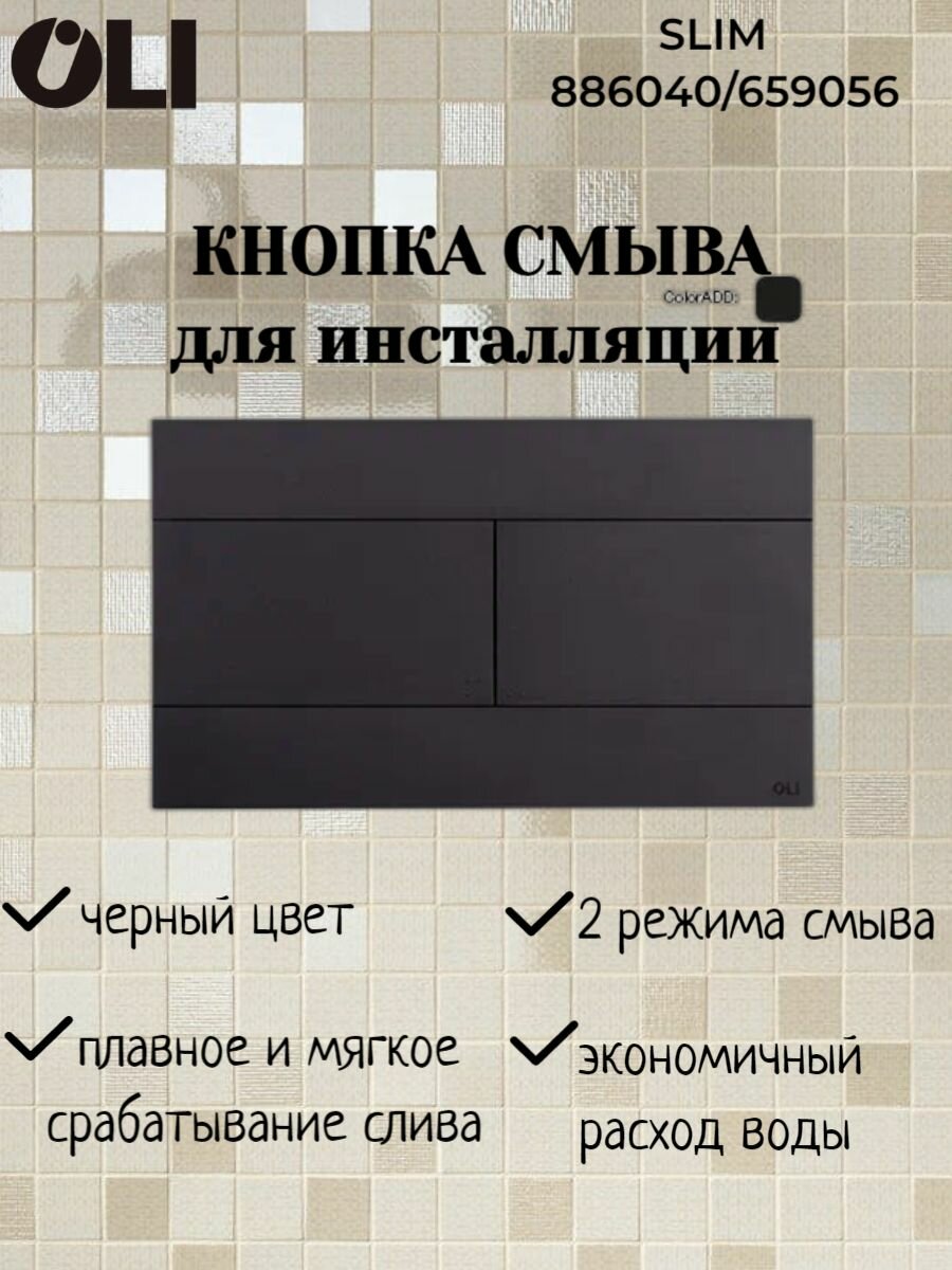 Кнопка смыва для инсталляции Oli Slim 25.5х0.6х15 886040/659056 цвет черный интересное: