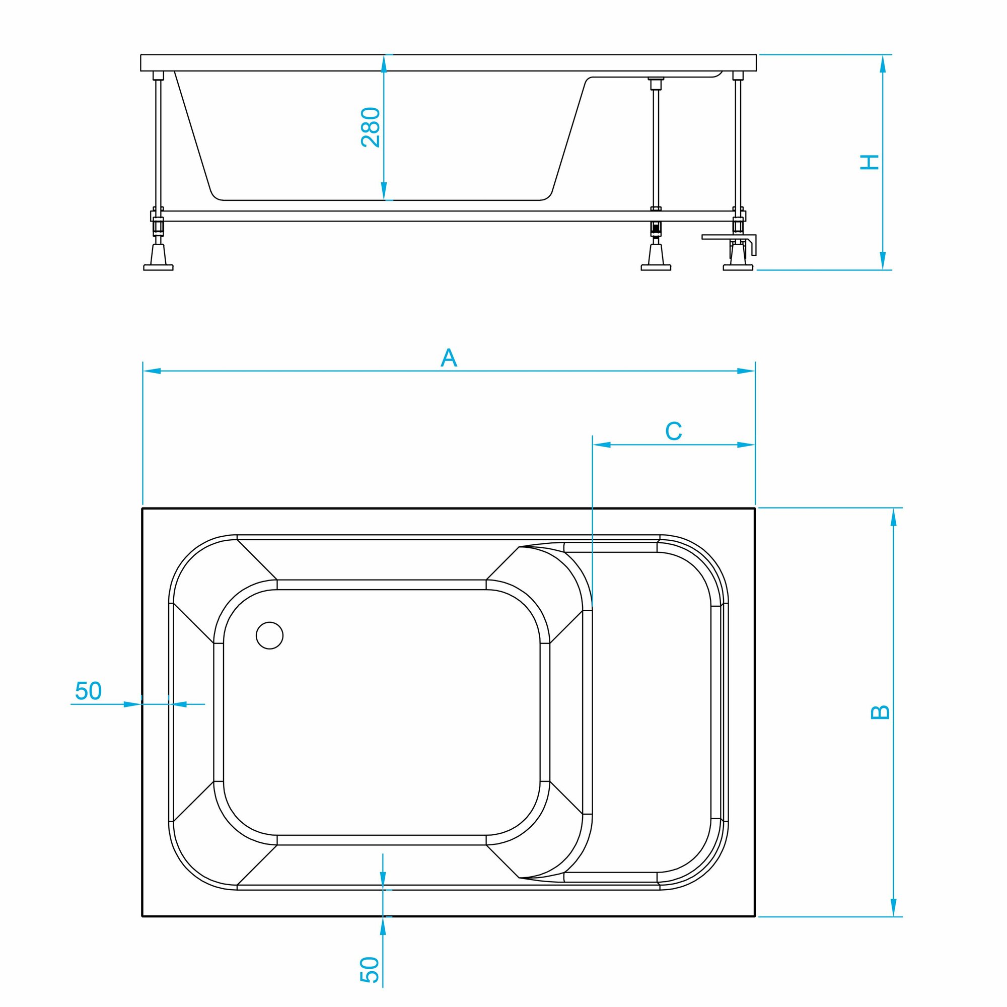 Душевой поддон RGW 80 х 120 х 28 см BC/L прямоугольный 90 мм (d слива), с сиденьем (16180682-91)
