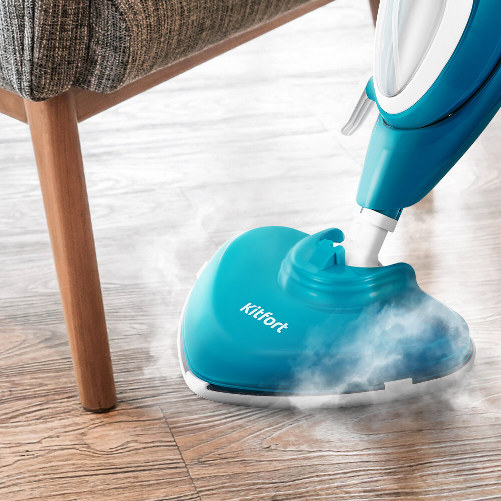 Швабра паровая Kitfort КТ-1081 1500Вт бирюзовый/белый интересное: