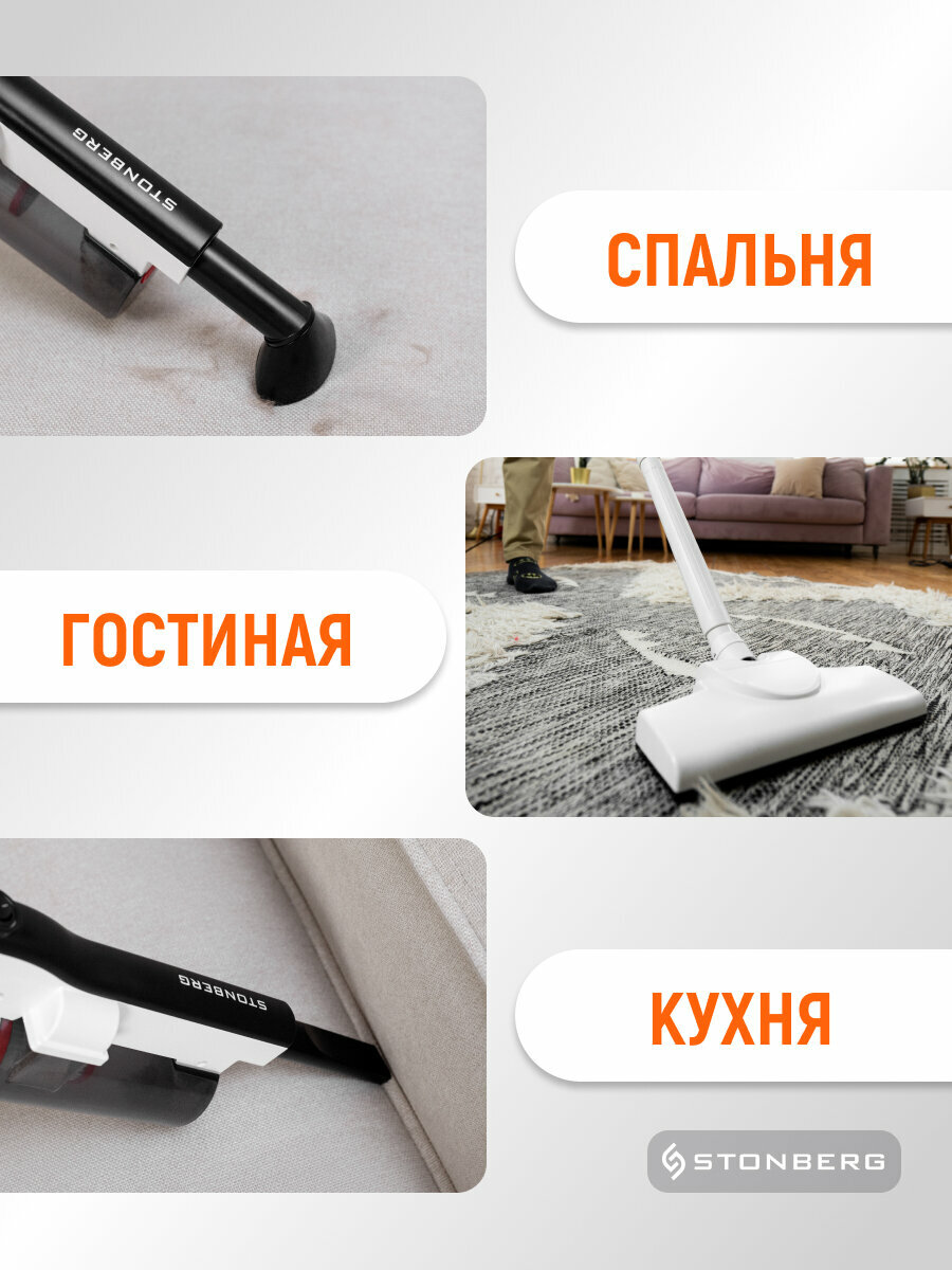 Вертикальный пылесос Stonberg VC-101WB, 600 Вт, белый-черный интересное: