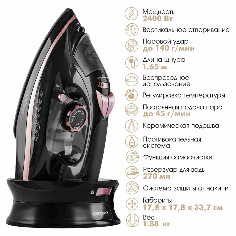 Утюг ENDEVER Delta-229, черный/розовое золото интересное: