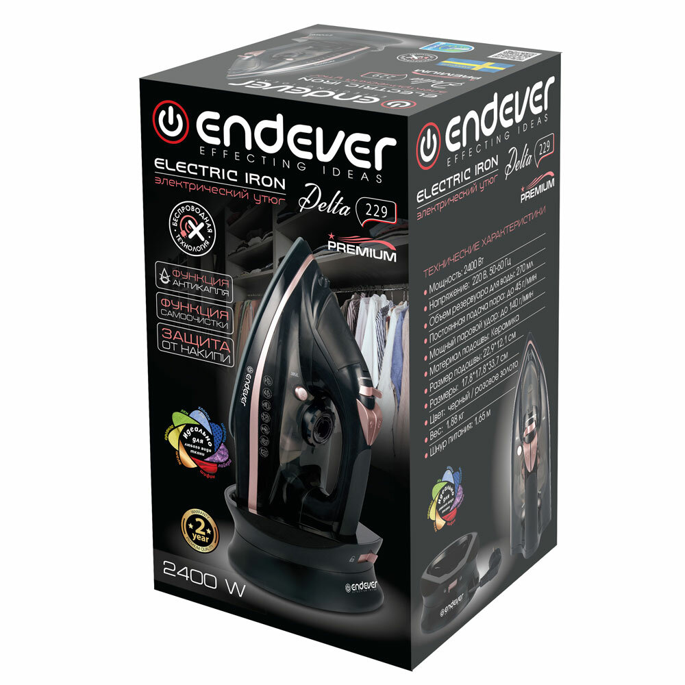 Утюг беспроводной для одежды ENDEVER Delta-229 / 2400 Вт