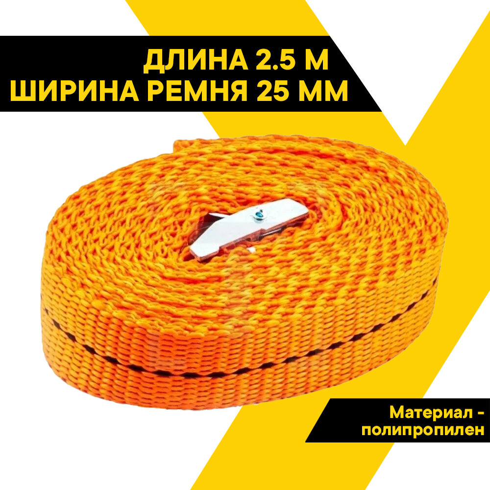 Стяжной ремень, TOP AUTO, ремень крепления груза, 2,5 м, ширина ленты 25мм, 250 кг, механизм пряжка с фиксатором, РК25 интересное:
