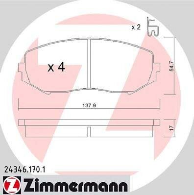 24346.170.1_Колодки Дисковые !Перед. 138X55x17 Suzuki Grand Vitara 1.6Vvt/2.0I Jlx/1.9Ddis/2.0Dlxi Zimmermann арт. 243461701