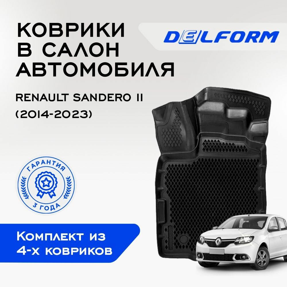 Коврики в машину Renault Sandero II (2014-н.в.) / полный набор в салон Рено Сандеро 2 с бортами и ячейками ЭВА 3Д / версия "Standart EVA 3D" Delform