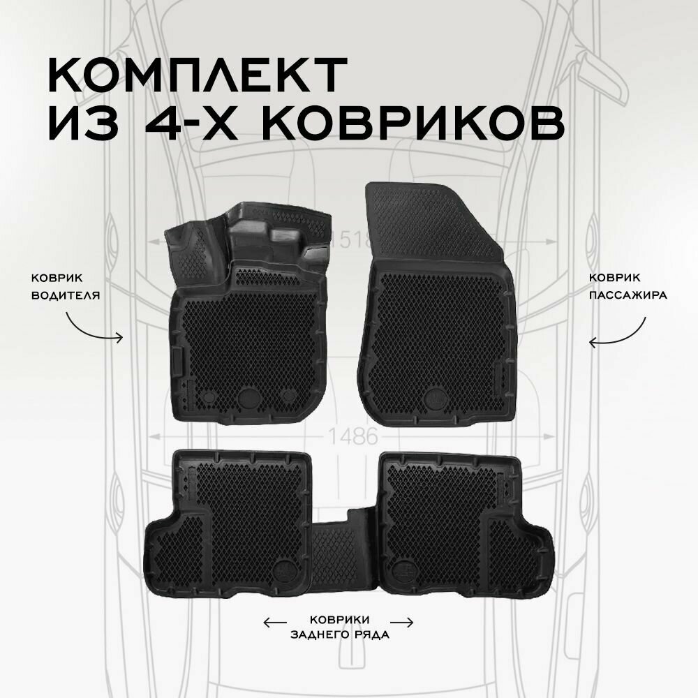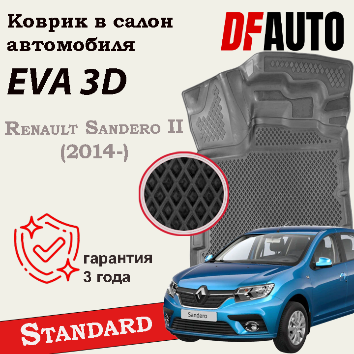 Коврики EVA/ЭВА 3D Renault Sandero (2014-2022) / Рено Сандеро (2014-2022) DelForm / набор ковриков для автомобиля в салон