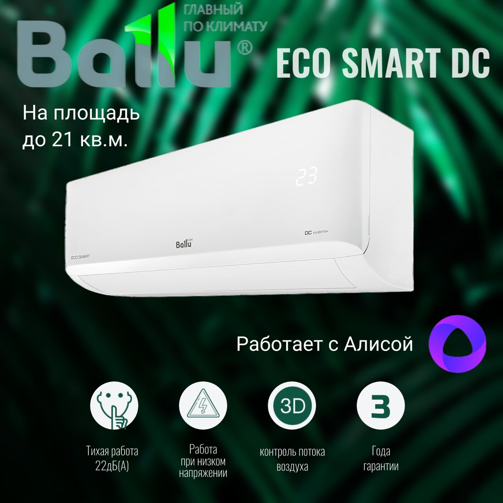 СохранитьСплит-система Ballu EcoSmart DC 07HN8/ES_23Y для помещений 20м² интересное: