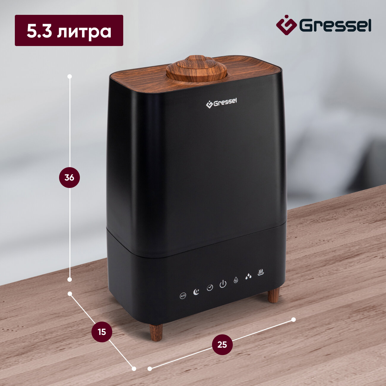 Увлажнитель воздуха для дома Gressel GRU-5002, ультразвуковой с пультом управления, аромадиффузор 5.3 л