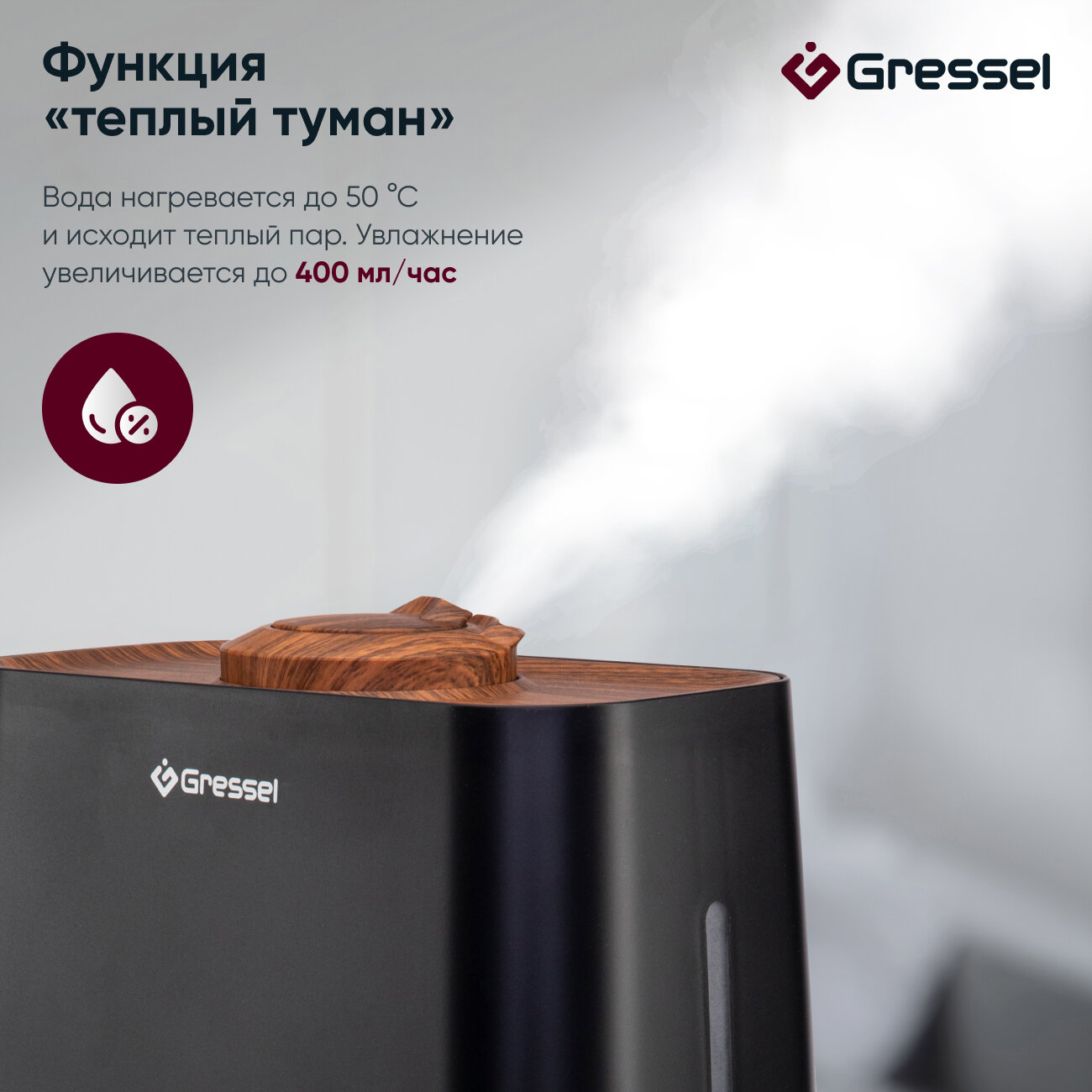 Увлажнитель воздуха для дома Gressel GRU-5001, ультразвуковой с фильтром очистки воды, 4л, аромадиффузор
