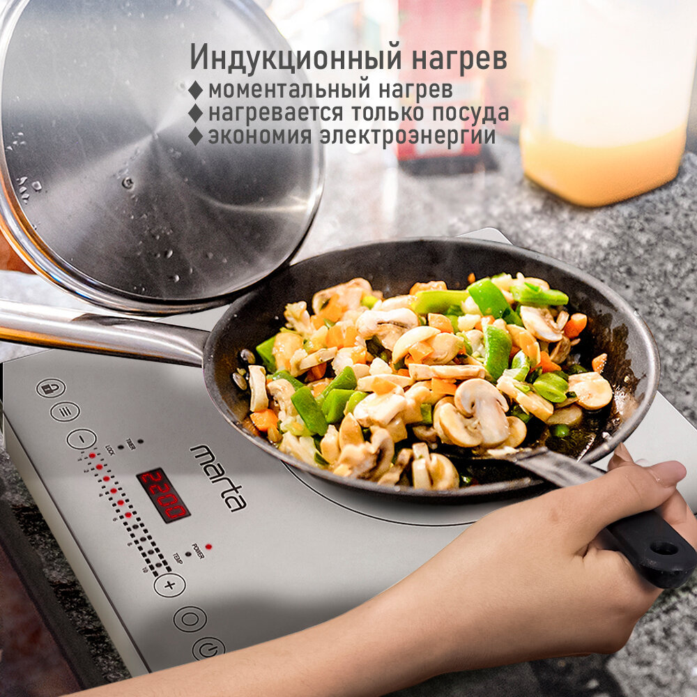 Электрическая индукционная безимпульсная плитка MARTA MT-4221 белый жемчуг интересное: