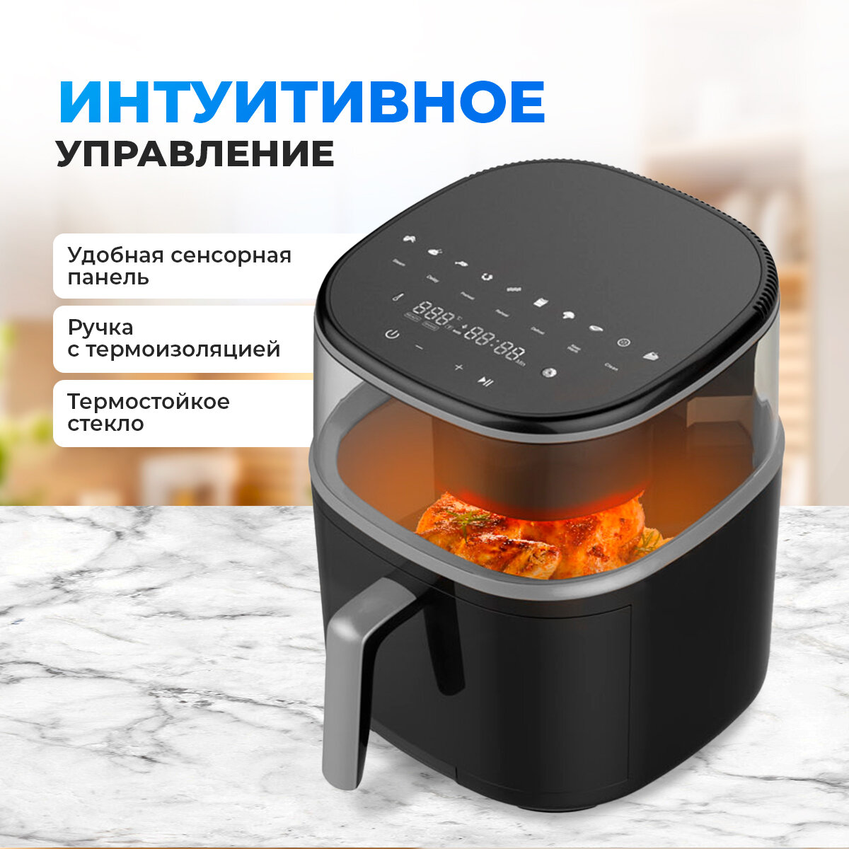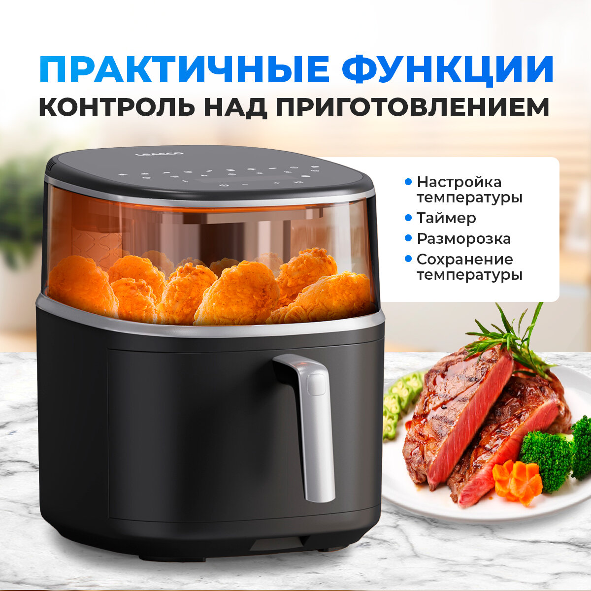 Аэрогриль электрический умный / аэрофритюрница LEACCO AF017, черный интересное: