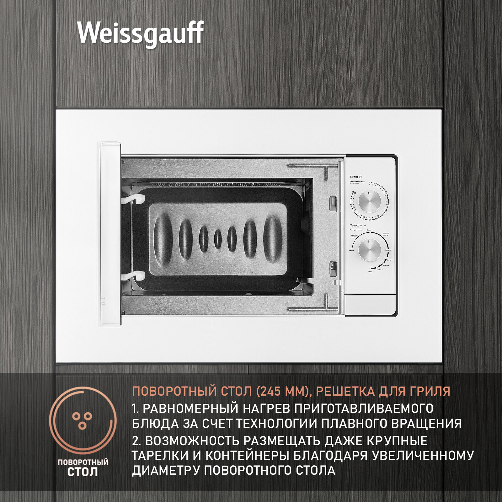 Встраиваемая микроволновая печь Weissgauff HMT-2016 Grill 3 года гарантии, объем 20 литров, гриль, разморозка по весу