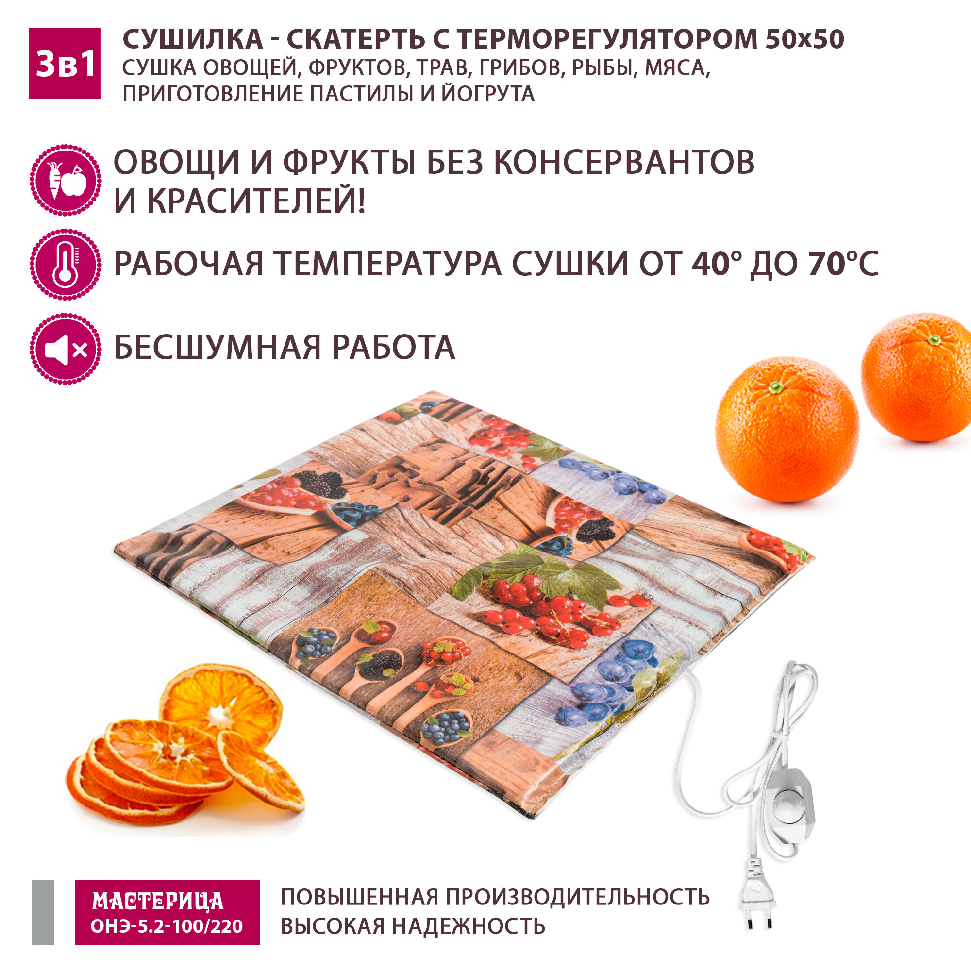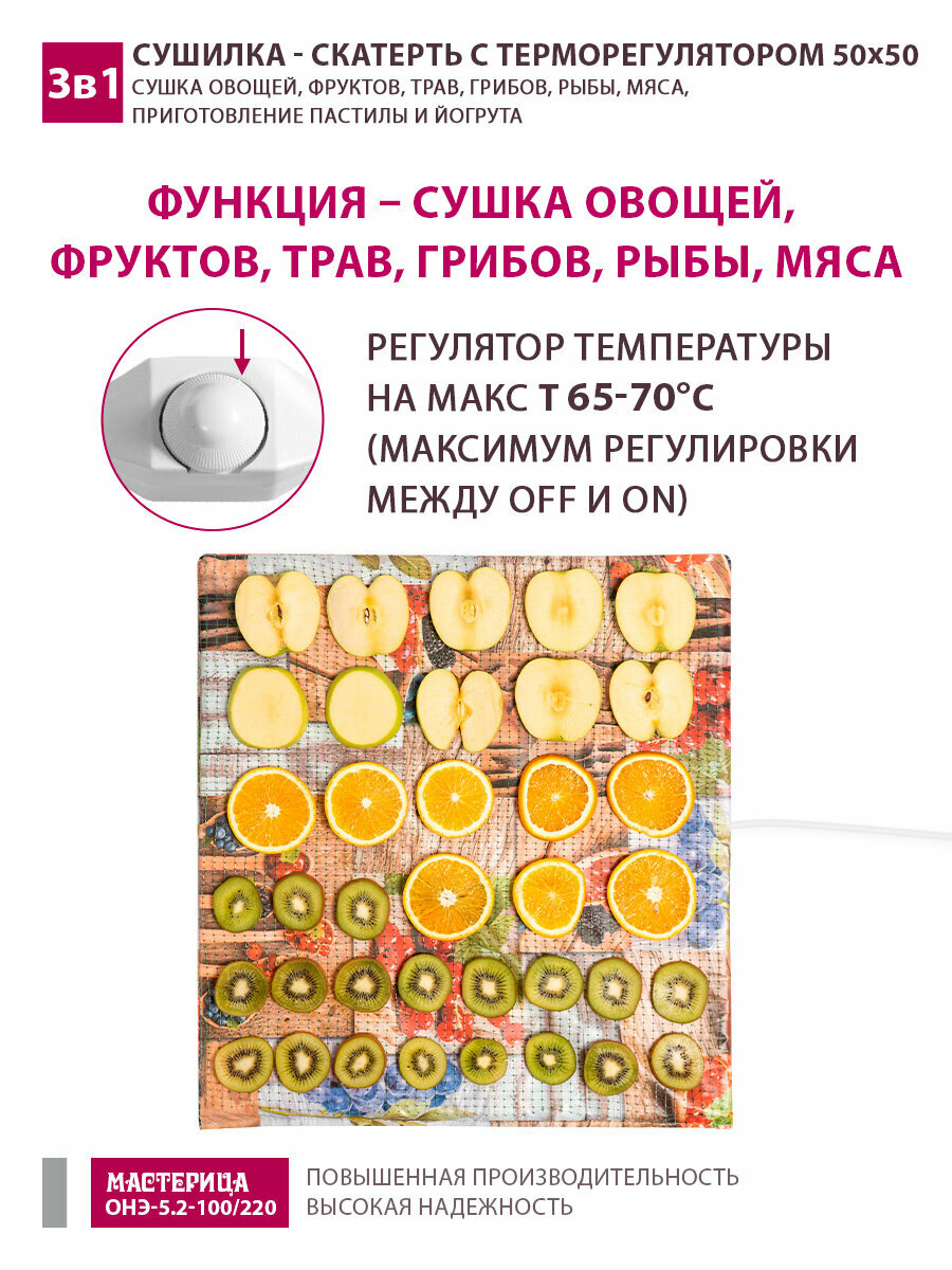 Сушилка - скатерть для овощей и фруктов Мастерица ОНЭ-5.2-100/220 50х50см с терморегулятором интересное: