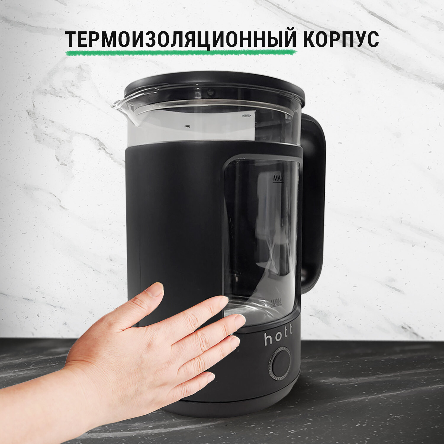 Купить Чайник электрический (электронный) стеклянный с подсветкой Hott HT-EKGD04 черный. Электрочайник с подставкой пластиковый с прозрачными вставками из стекла и корпусом из нержавеющей стали