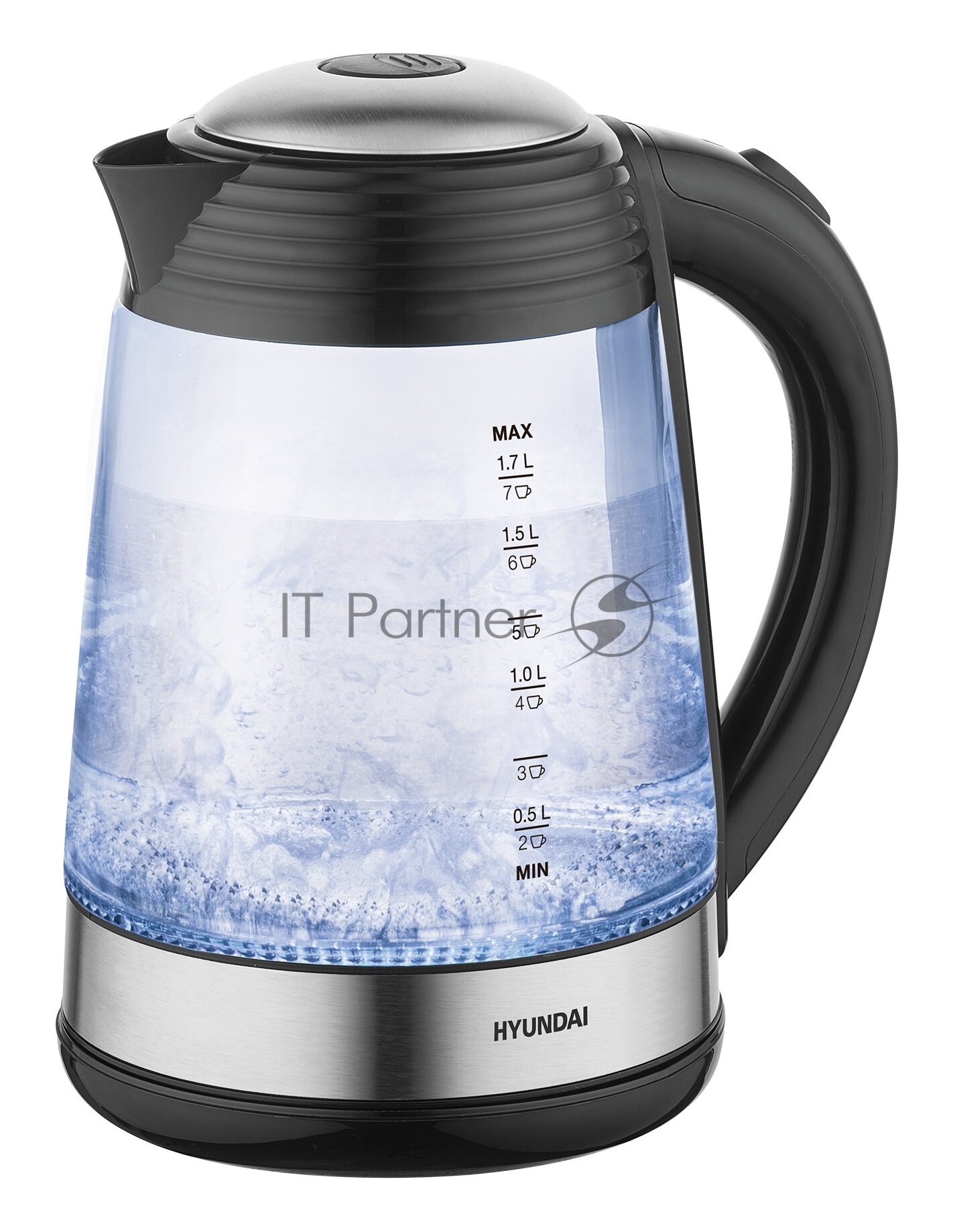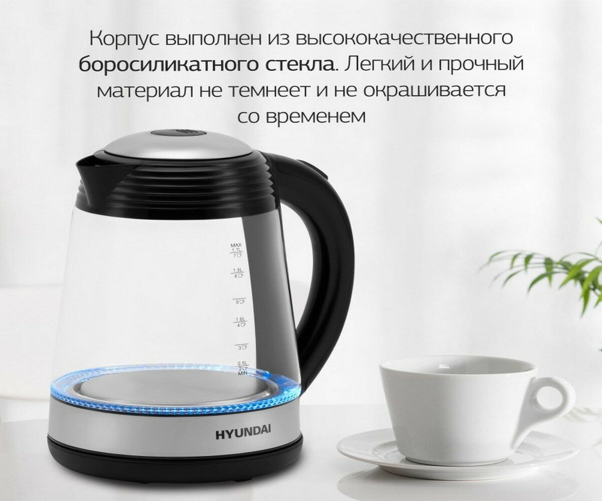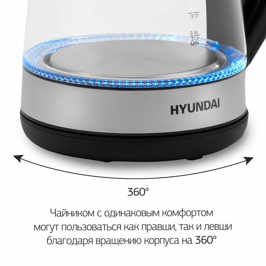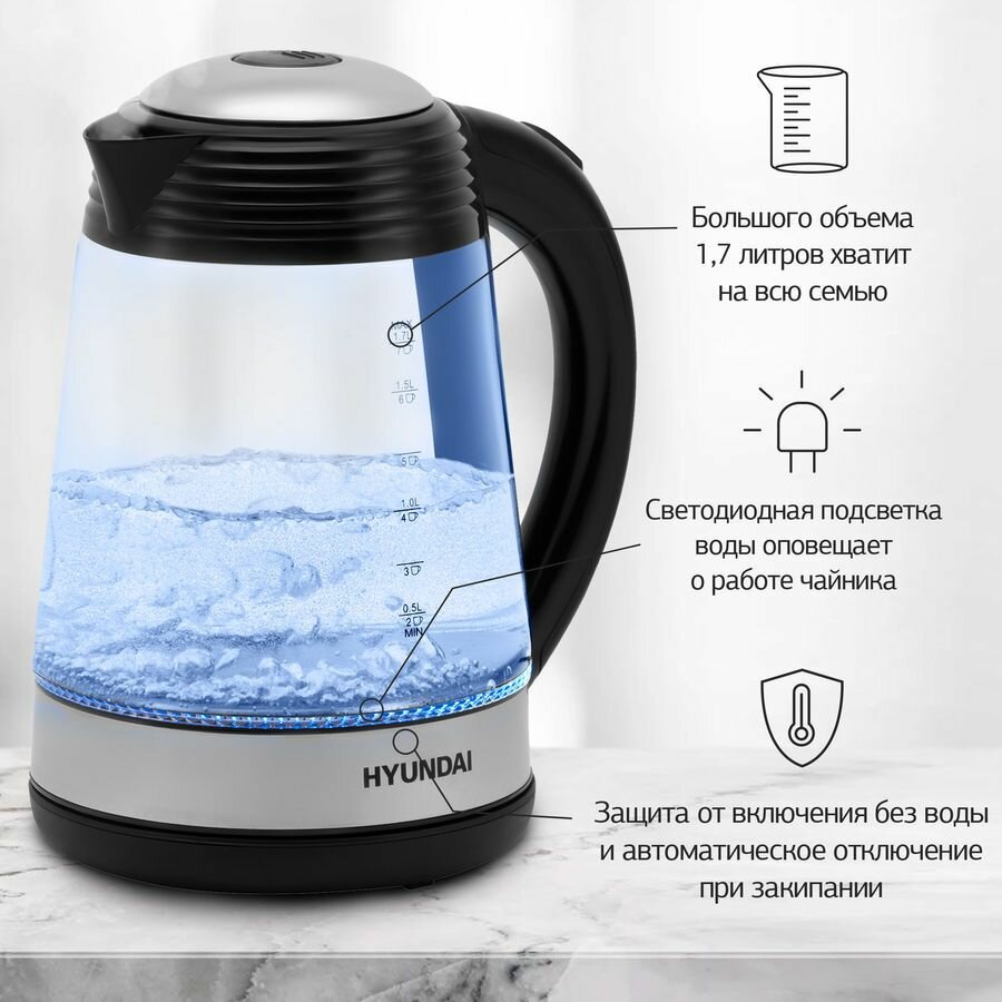 Чайник Hyundai HYK-G3803 черный и серебристый