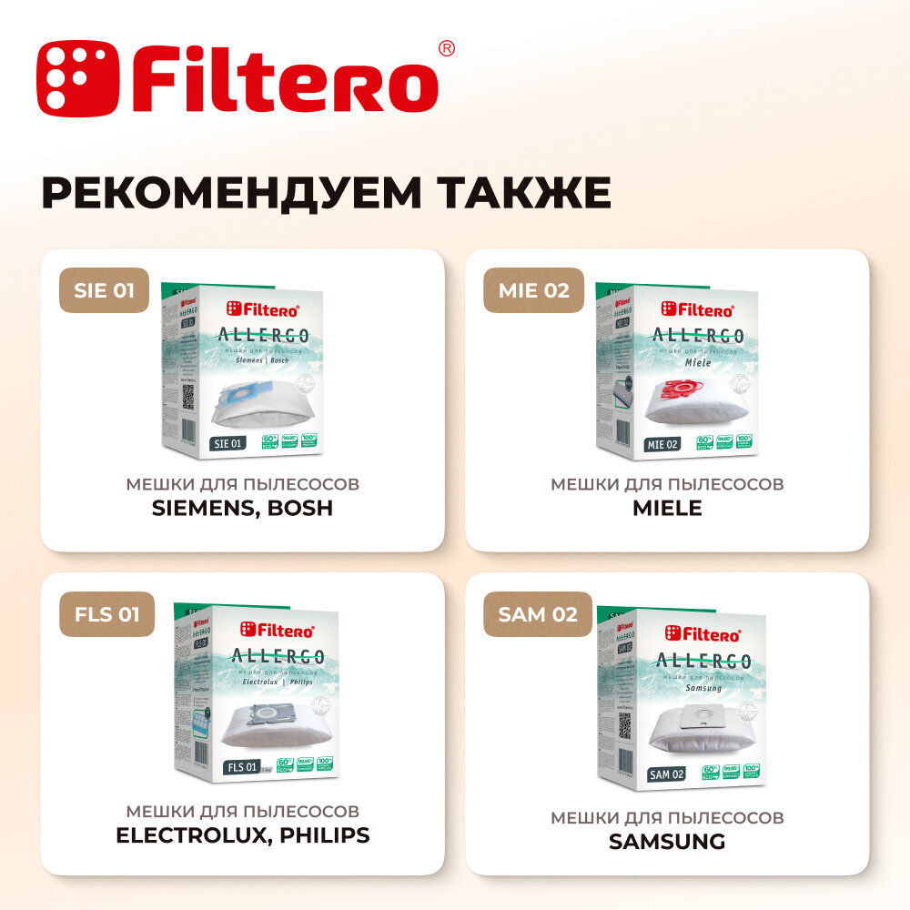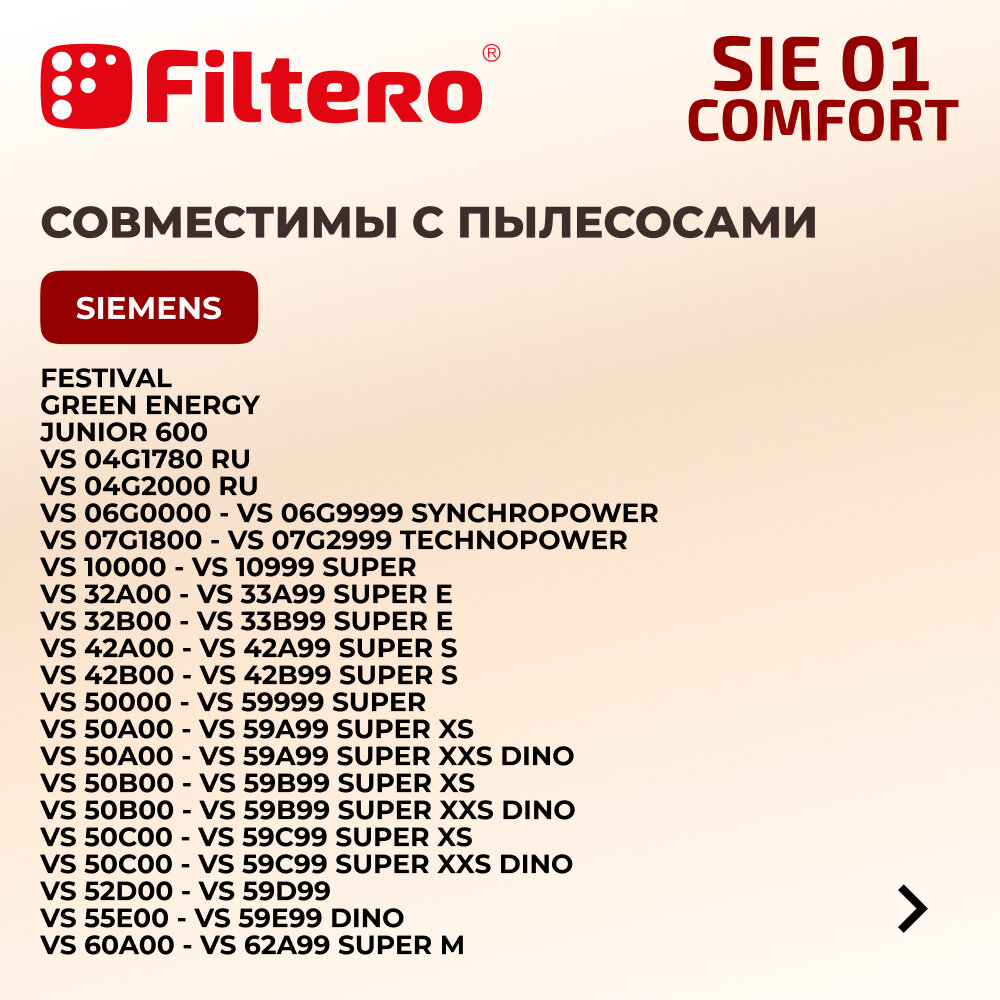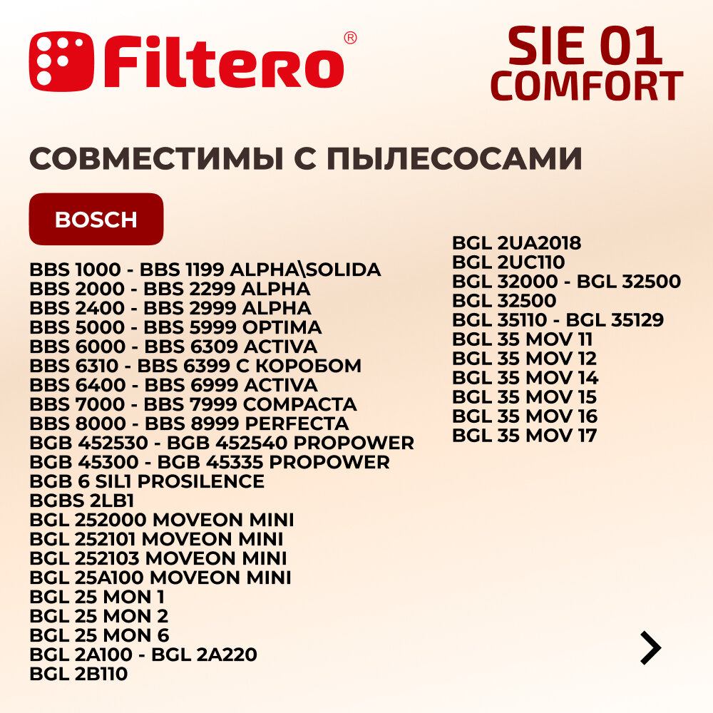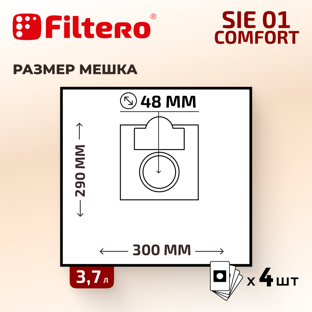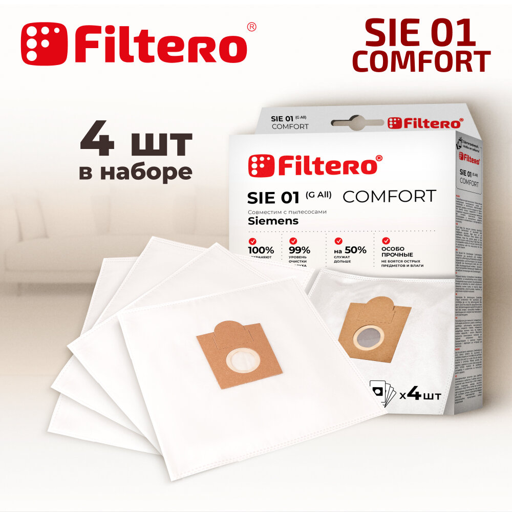 Мешки-пылесборники Filtero SIE 01 Comfort, для пылесосов Bosch, Siemens, синтетические, 4 штуки