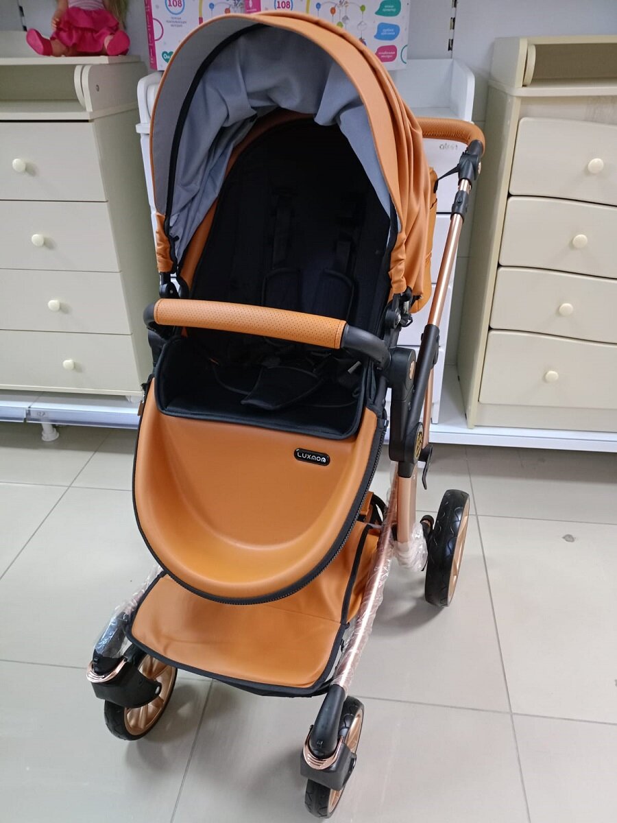 Коляска - трансформер 2в1 Luxmom 608-2 коричневая экокожа интересное:
