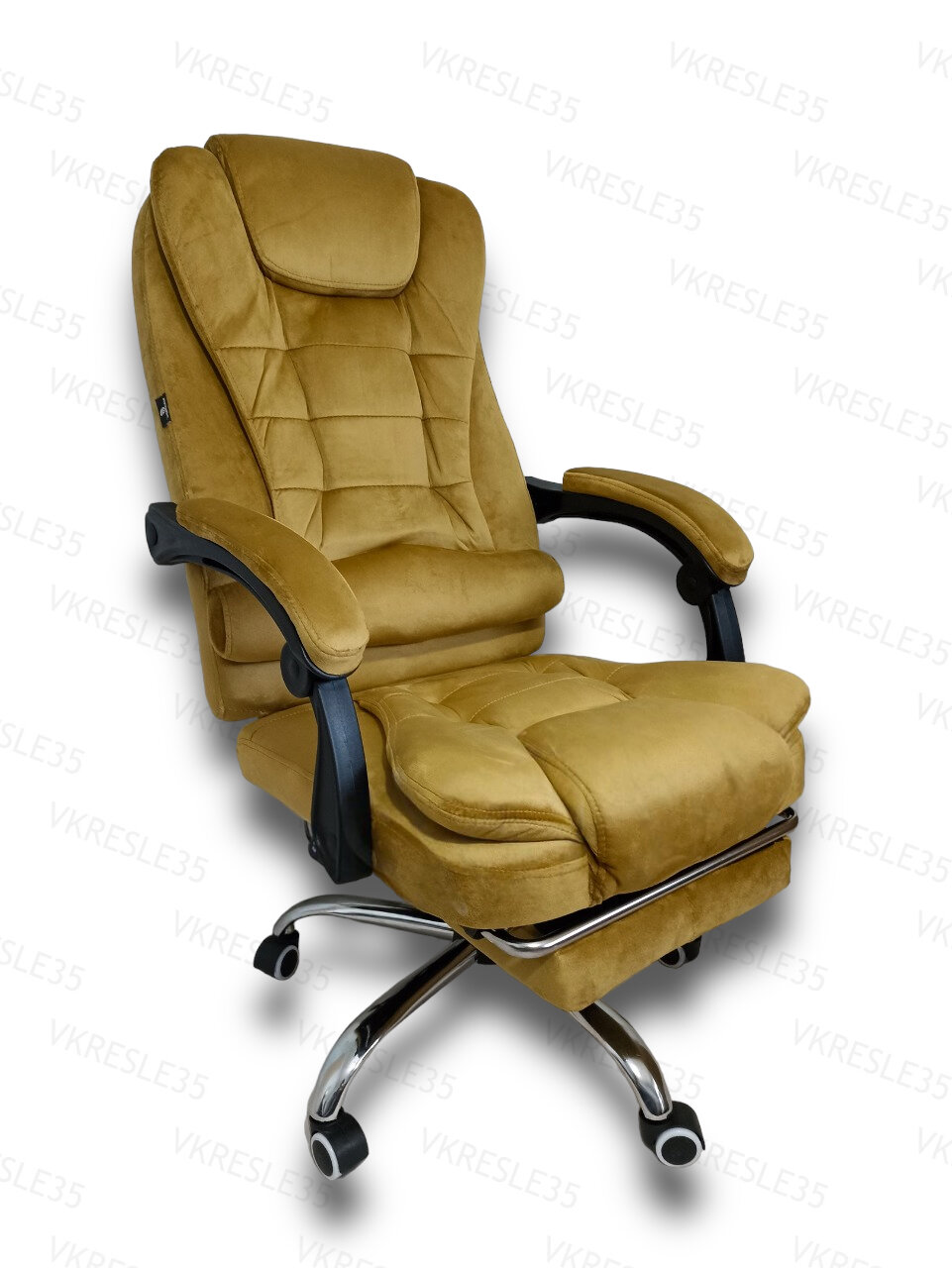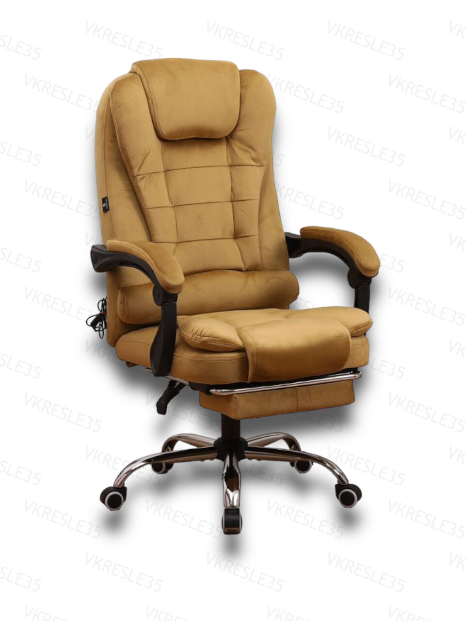 Купить Компьютерное кресло - Кресло Руководителя, функция Вибромассажа, Велюр, с подставкой для ног, цвет Золотой