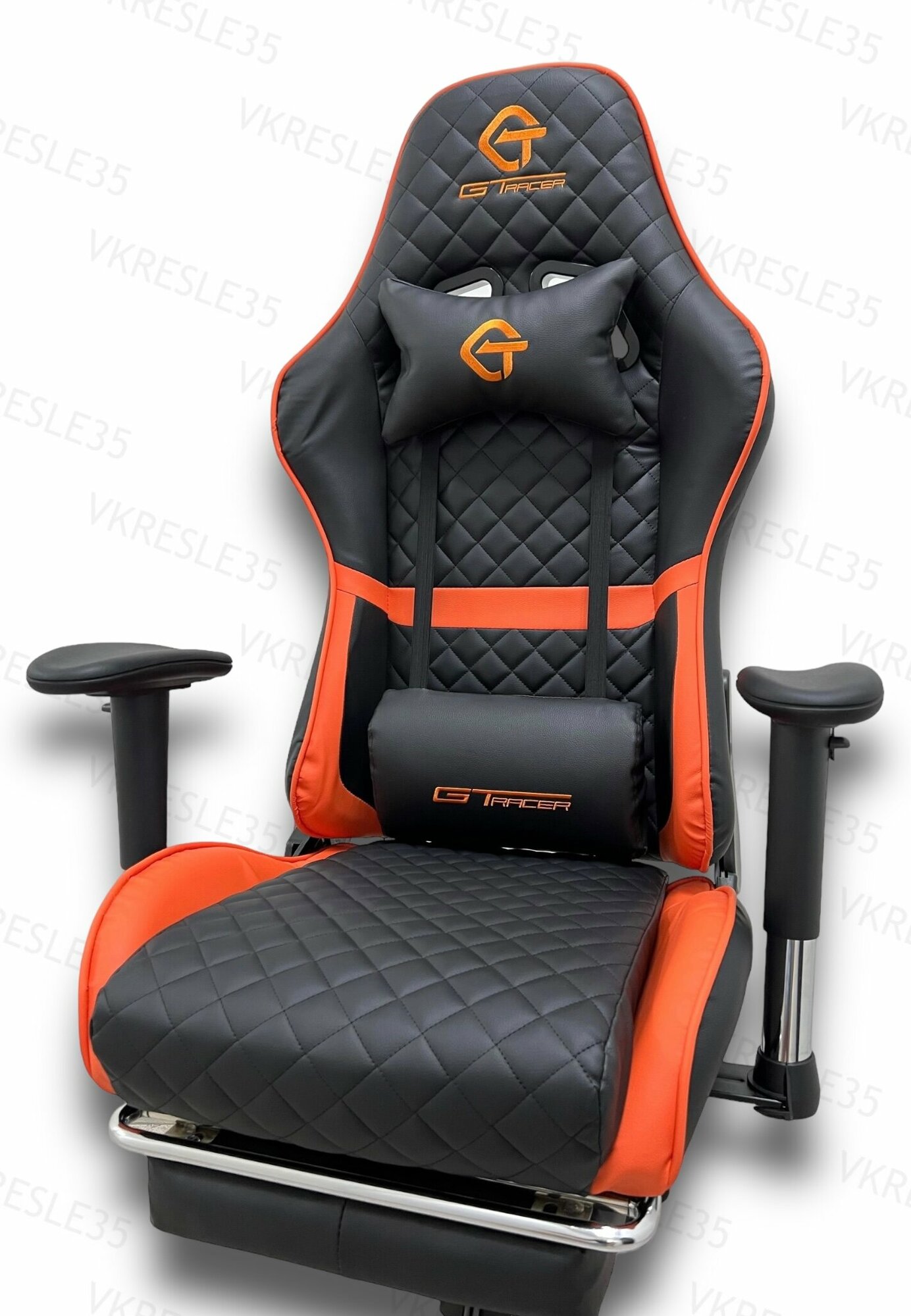 Купить Игровое Компьютерное Кресло,Черно-Оранжевый, с подставкой для ног
