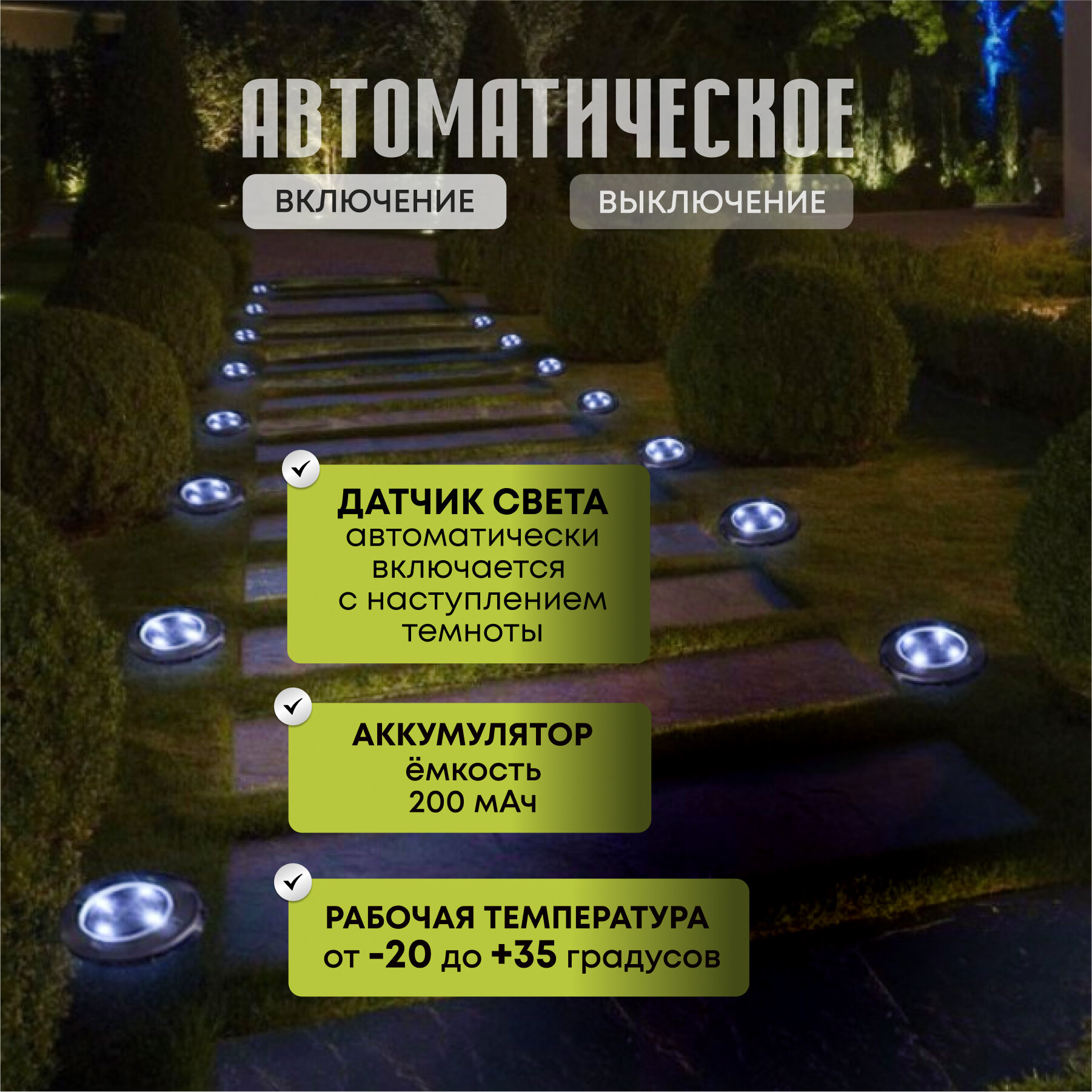 | Особенности | на солнечной батарее / прозрачный плафон |