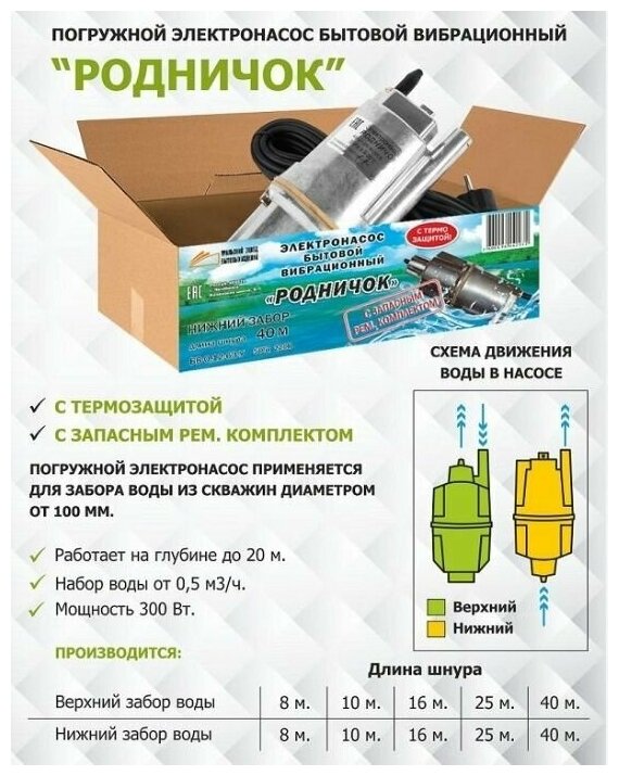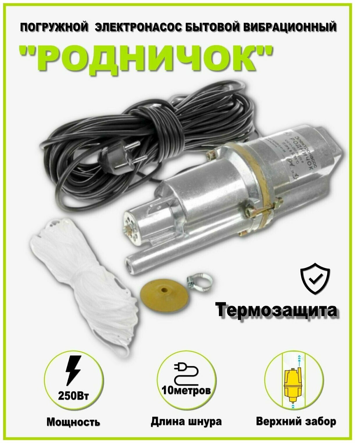 Насос Родничок погружной, нижний забор (10 м, медная обмотка, термозащита) интересное: