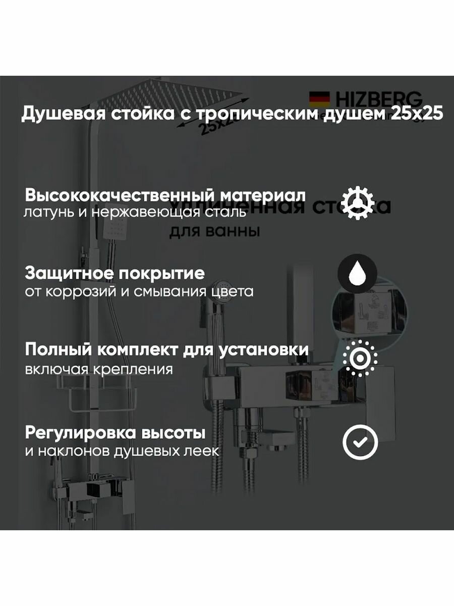 Душевая система Wergrauf 4S-30CH-L150 с тропическим душем удлиненная
