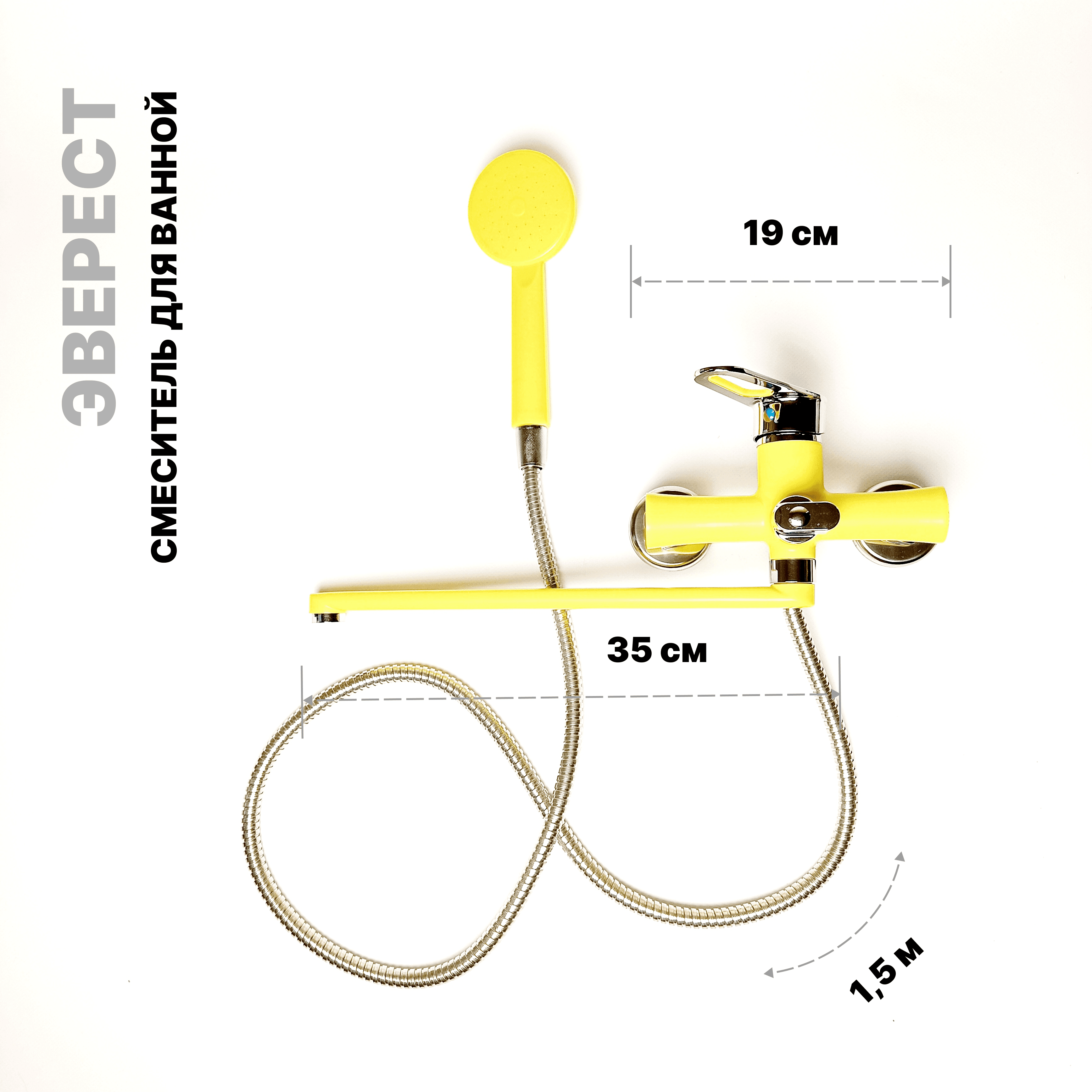 Эверест Смеситель для ванны (Zn), плоский излив 350мм, кер.картр.25мм, лейка, желтый, B22-274B (арт. 810338)