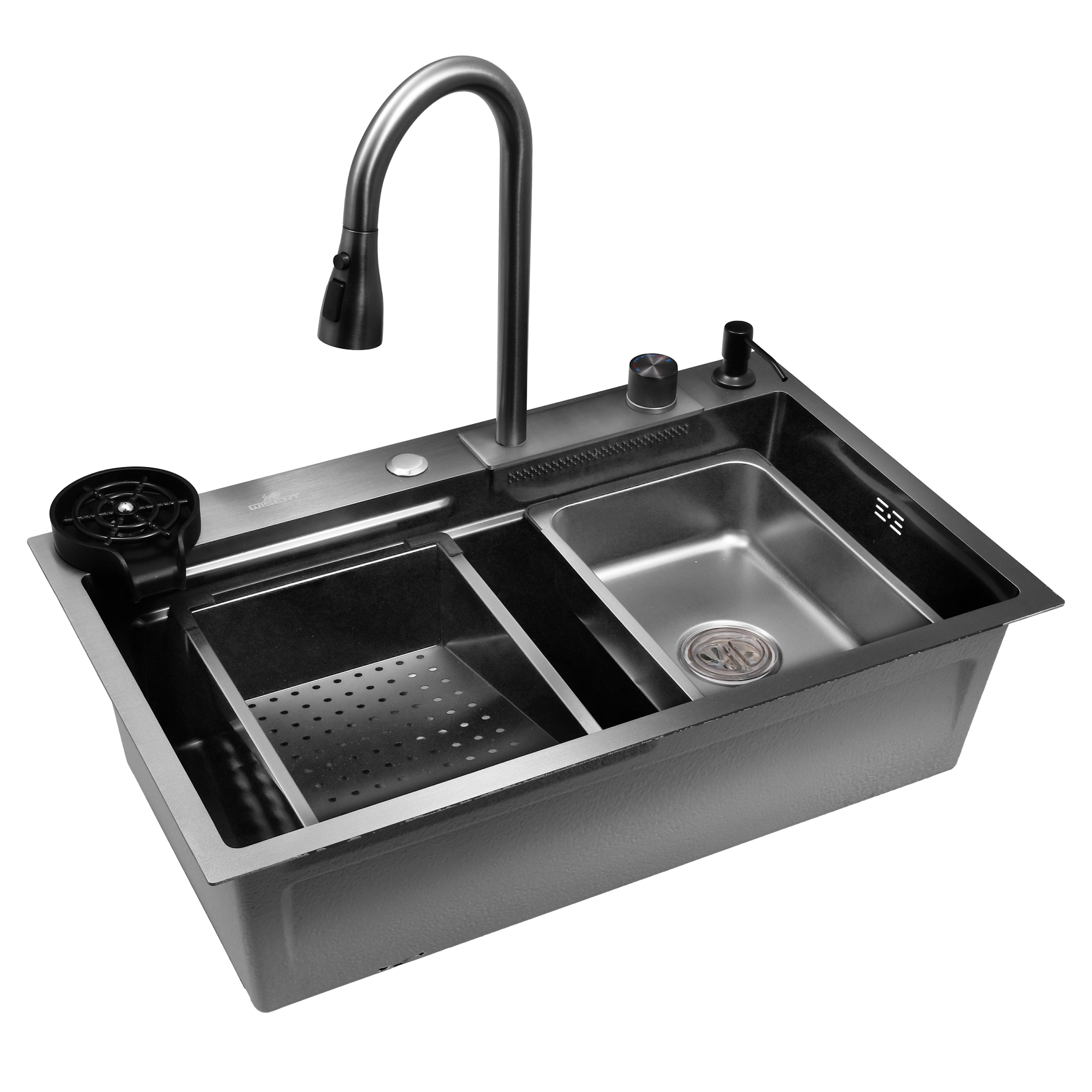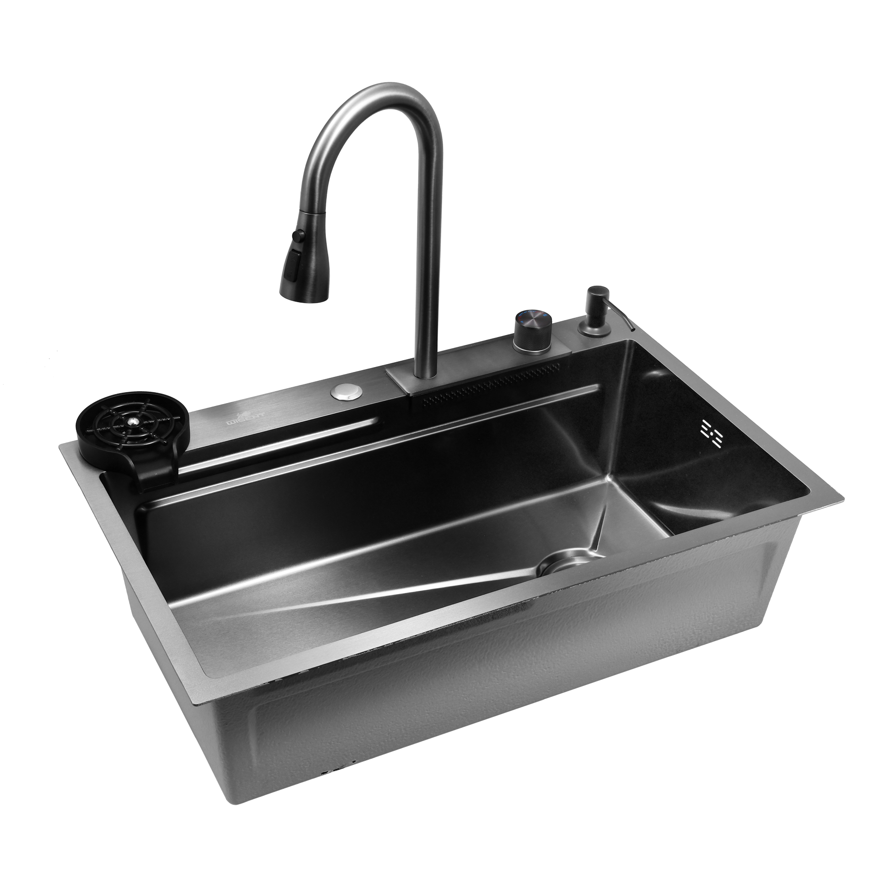 Многофункциональная мойка для кухни с водопадом и душем 75*45 с PVD покрытием Wisent WG37545B-S