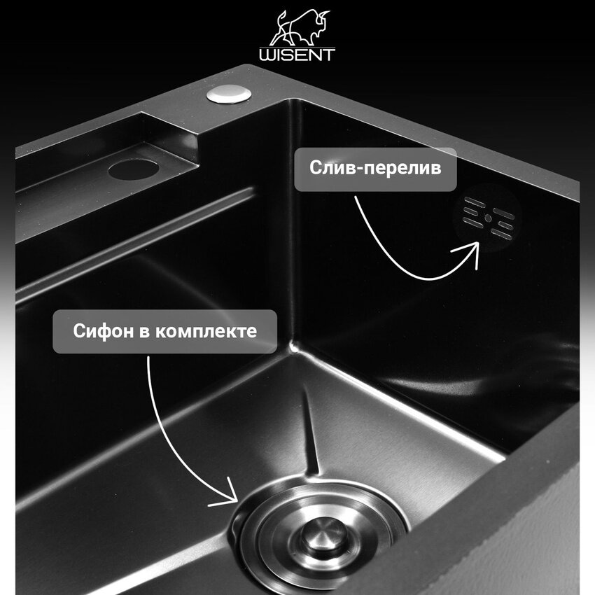Многофункциональная мойка для кухни из нержавеющей стали с PVD покрытием WISENT WG37546B-S (75x46)