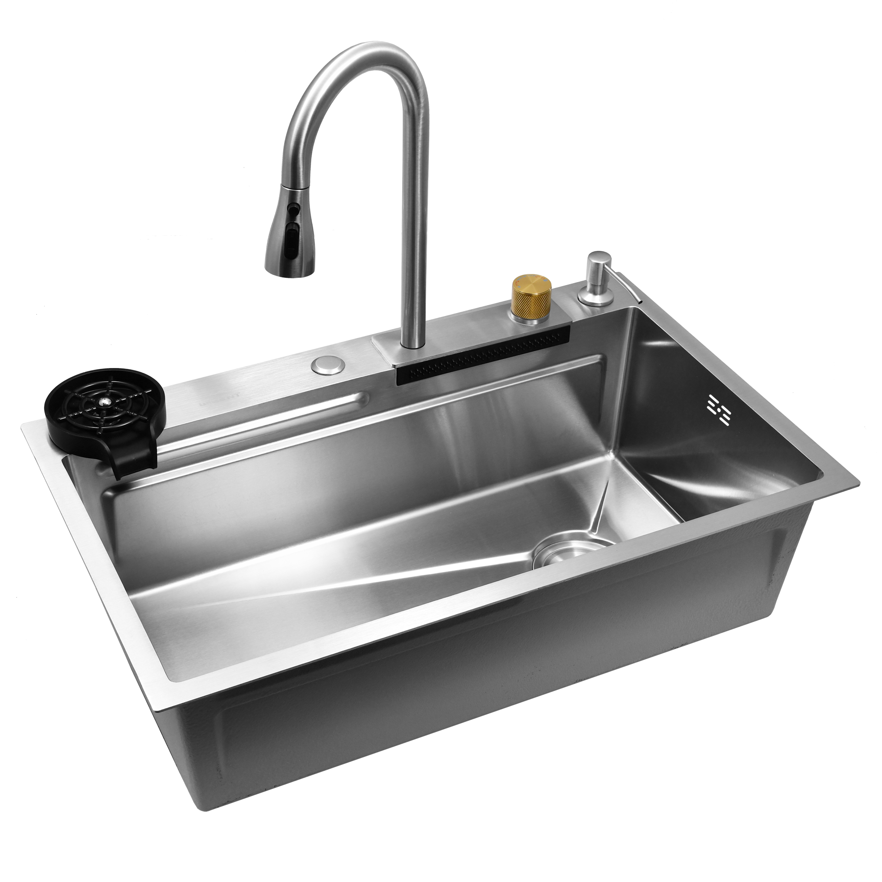 Многофункциональная мойка для кухни с водопадом и душем 75*45 с PVD покрытием Wisent WG37545B-S