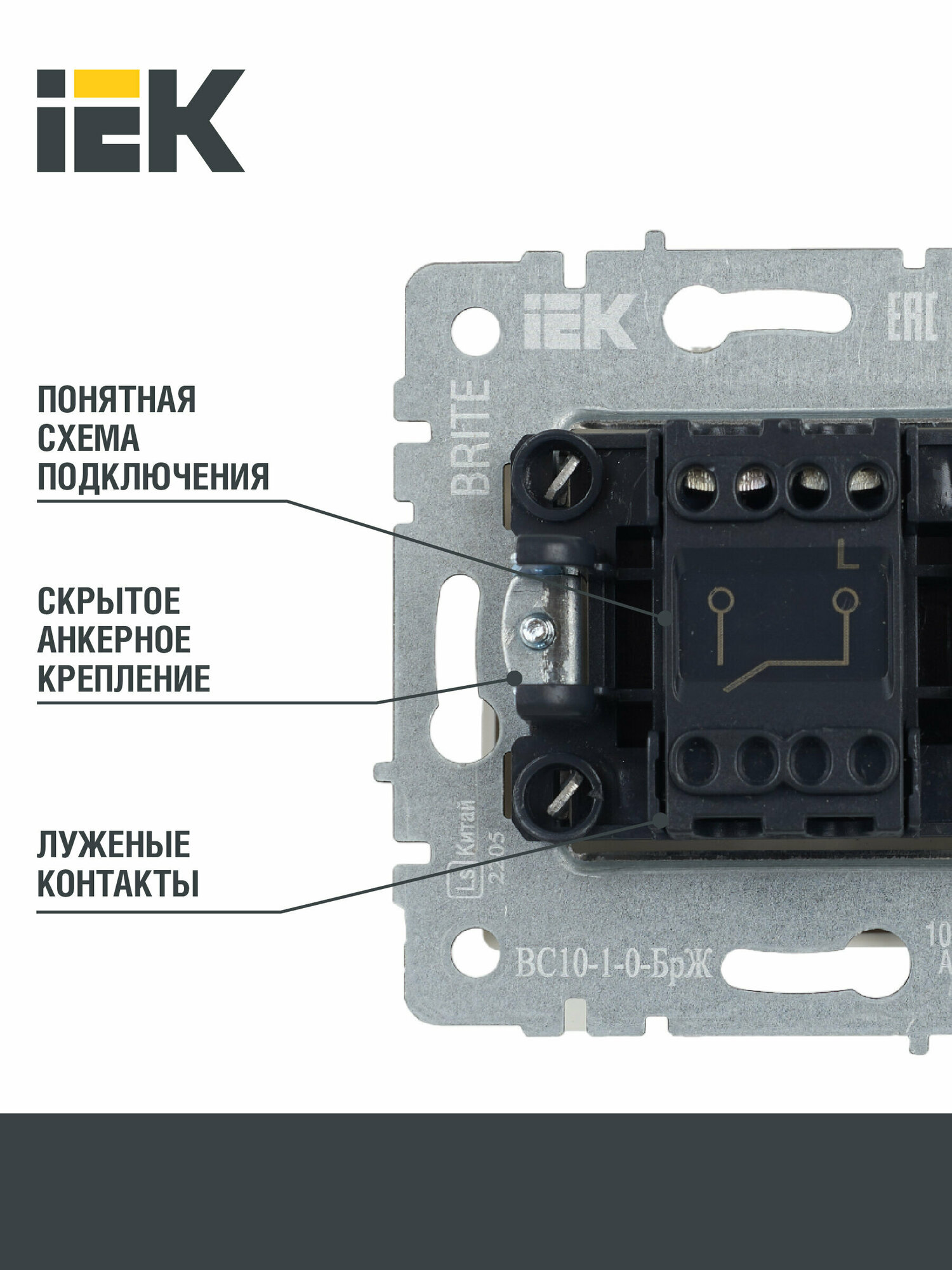 Выключатель одноклавишный BRITE 10А ВС10-1-0-БрШ IEK