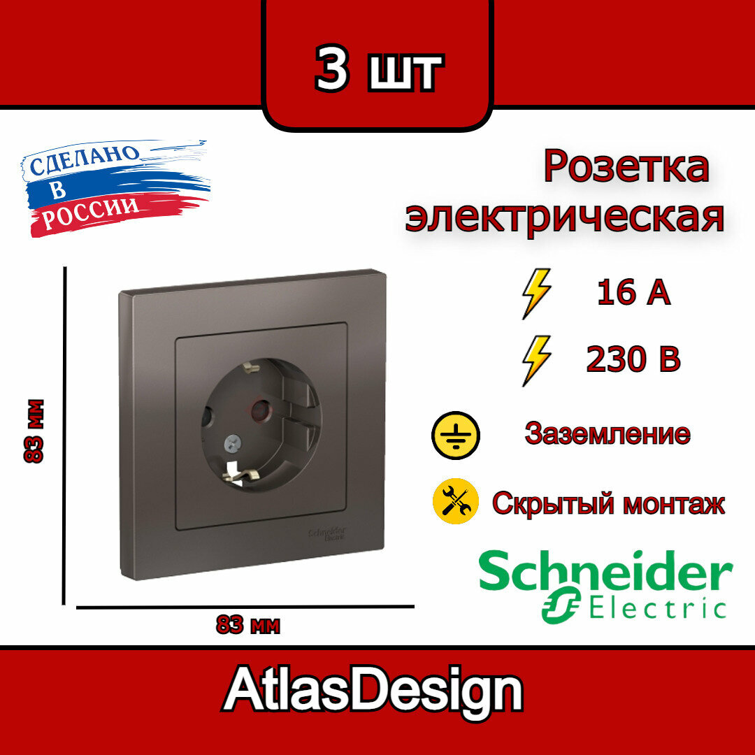 СохранитьРозетка с заземлением, со шторками, в сборе, мокко Schneider Electric AtlasDesign (комплект 3шт) интересное: