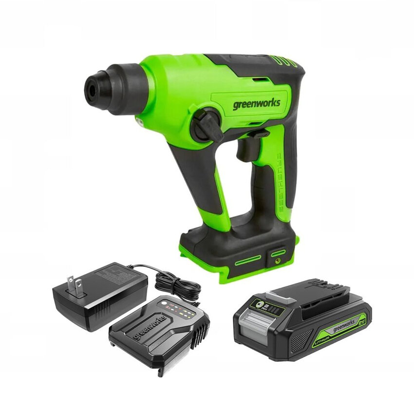 Перфоратор GreenWorks GD24SDS1K2 c АКБ 2Ач и ЗУ (3803107UA)